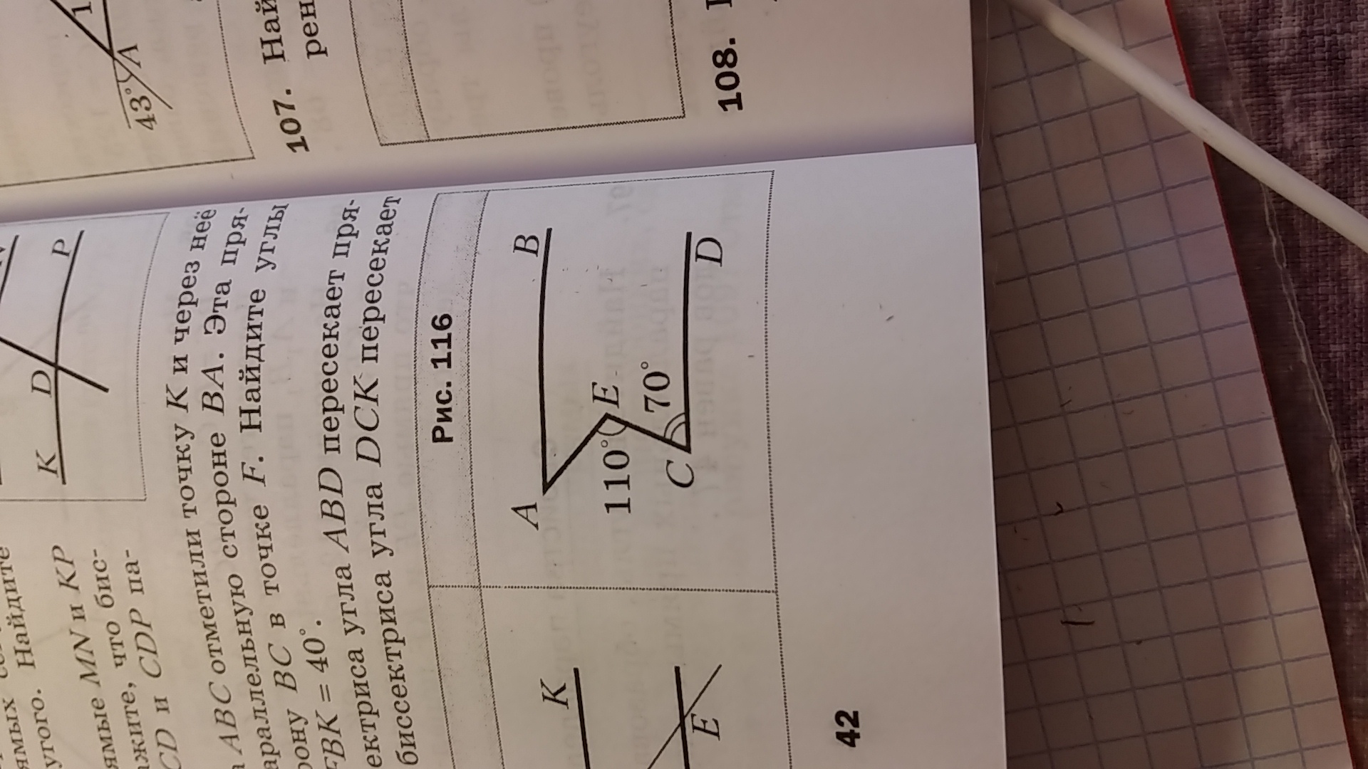 На рисунке 116 AB || CD. Найдите угол BAE, если угол AEC=110°, угол DCE=70°