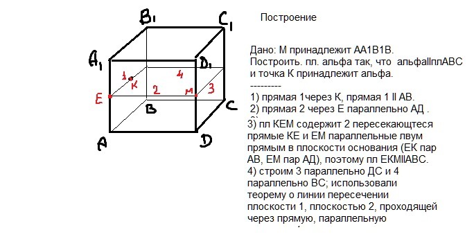 изобразите параллелепипед авсда1в1с1д1 и отметьте внутреннюю точку грани аа1в1в. постройте сечение параллелепипеда,проходящее через точку м параллельно плоскости основания