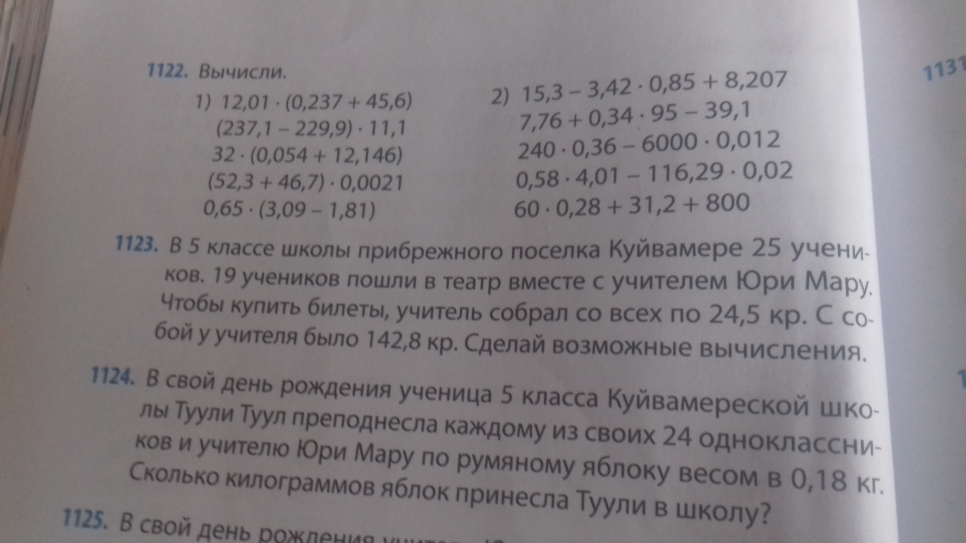 25-19=6 уч.не пошли в театр. 25*24.5=612.5кр сбор денег со всего класса.19*24.5=465.5 кр отданы за билеты. 612.5-465.5=147 кр надо отдать 6 ученикам .142.8-24.5+147=265.3 всего денег ост у учителя.