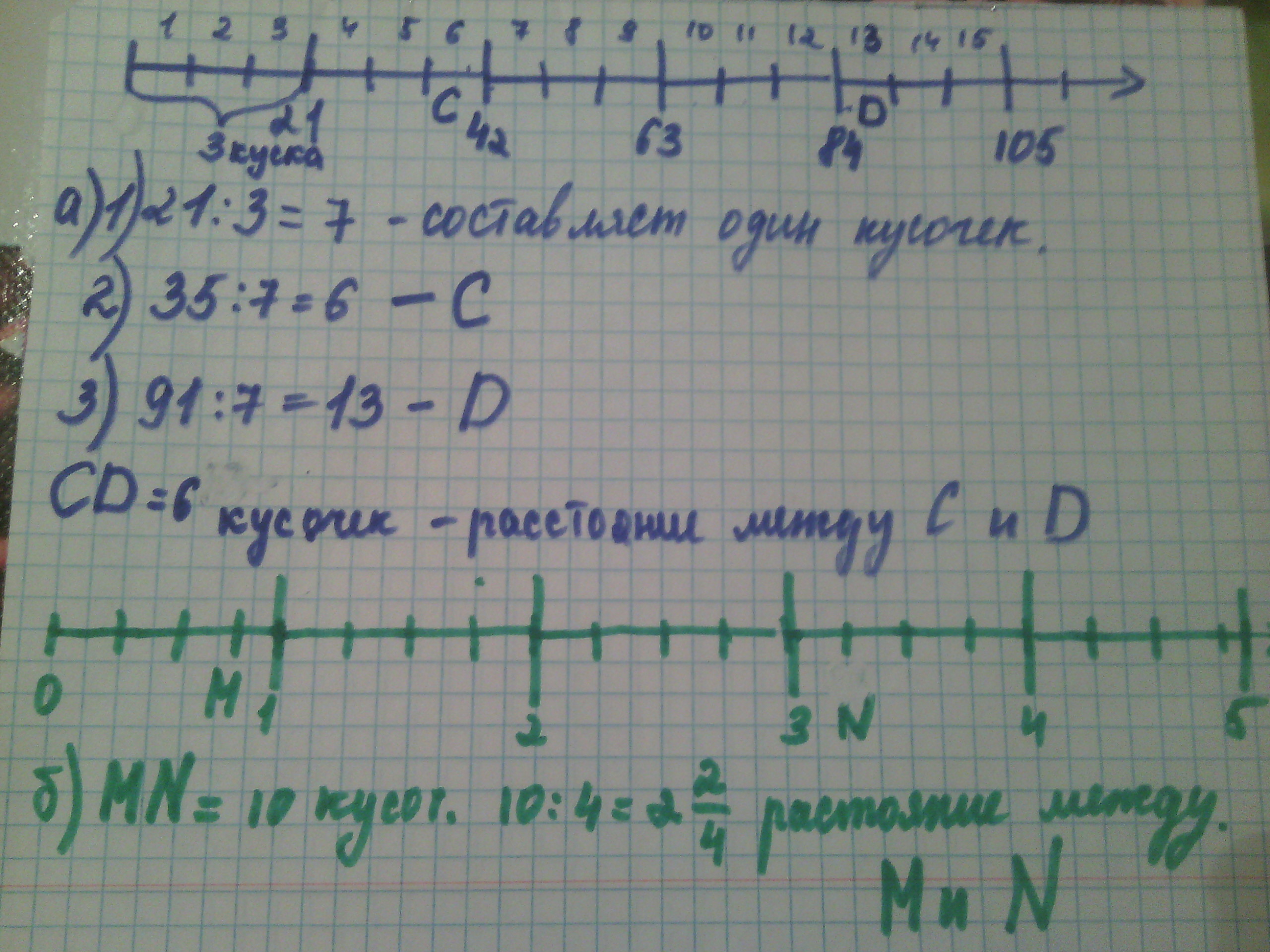 Там будет 35:7=5 - С а не 6 я ошиблась.)Расстояние между ними 7 кус