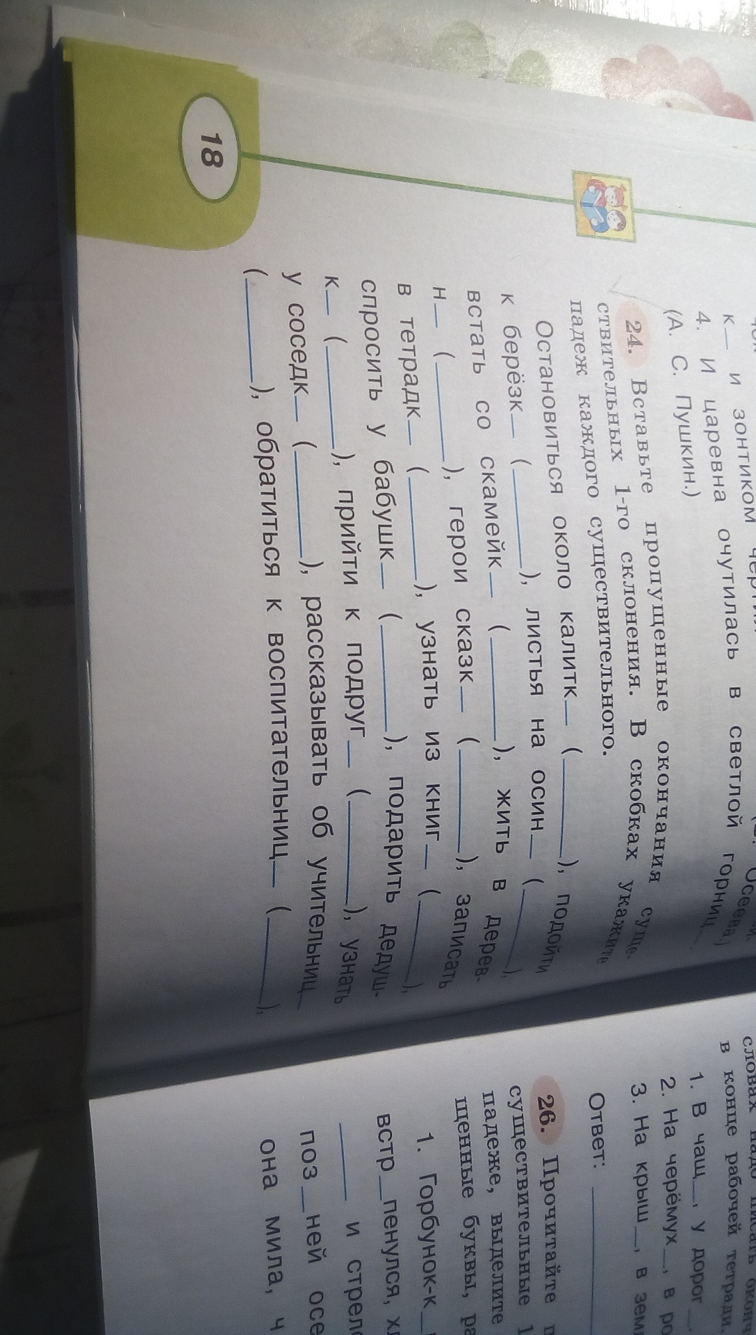 вставьте пропущенные окончания существительных 1 склонения в скобках Укажите падеж каждого существительного.