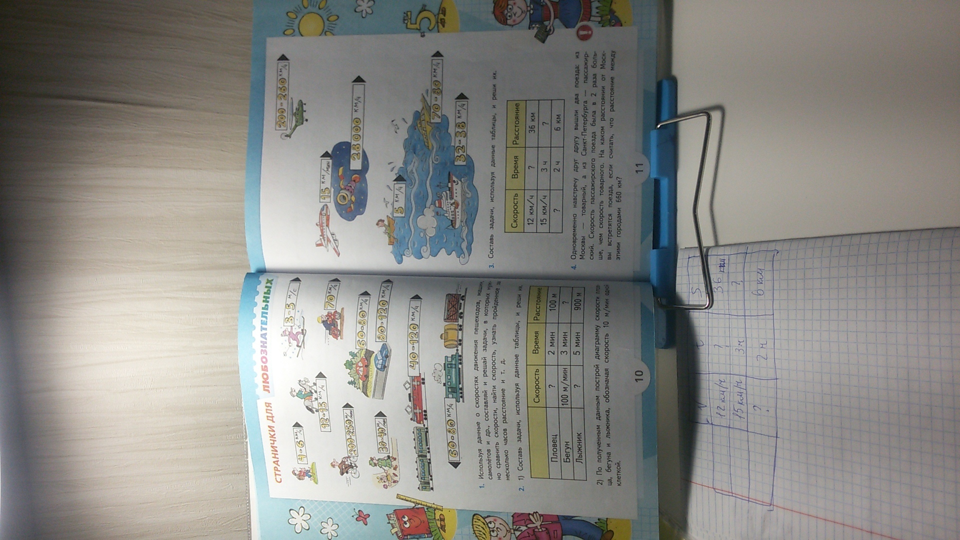 Составь задачи, используя данные таблицы и реши их. номер 3. используй картинки на 10 и 11стр.
