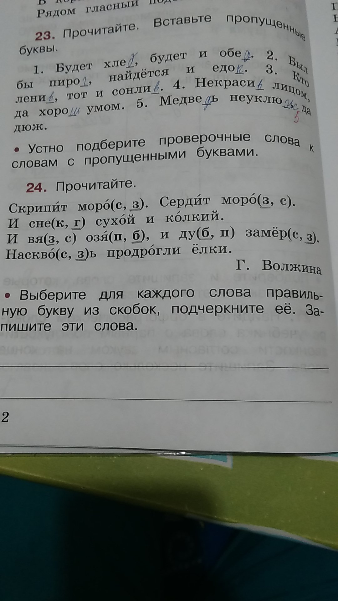 выберите для каждого слова правильную буквуиз скобок(Скрипит моро(с,з).Сердит мороз(з,с).И снег(к,г)сухой и колкий.И вя(з,с) озяб(п,б),и дуб(б,п) замер(с,з).Наскво(с,з)ь продрогли елки