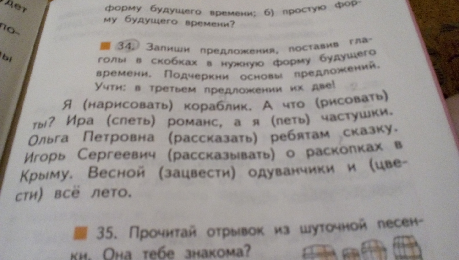 я нарисовал кораблик. А что рисовал ты? Ира спела романс, а я пел частушки. Ольга Петровна рассказала ребятам сказку. Игорь Сергеевич рассказал о раскопках в Крыму. Весной зацвели одуванчики и цвели все лето