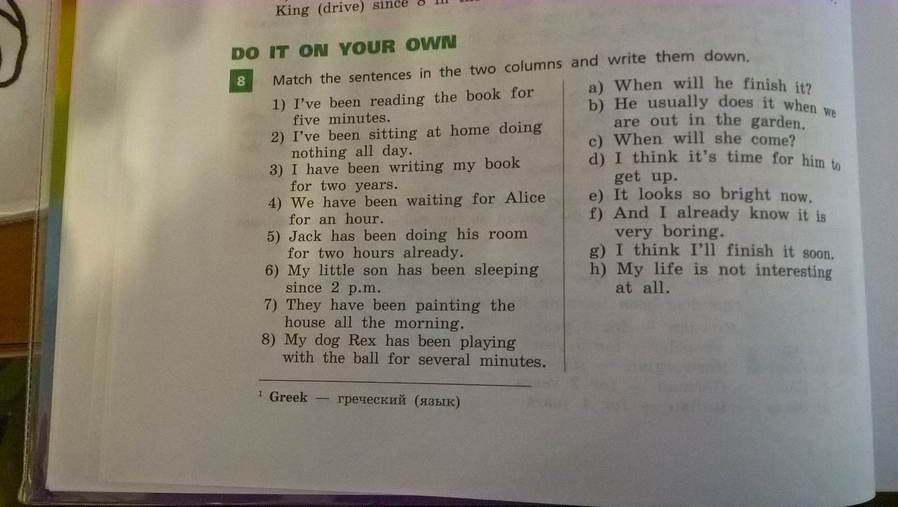 3-g) I have been writing my book for two years. I think I'll finish it soon.