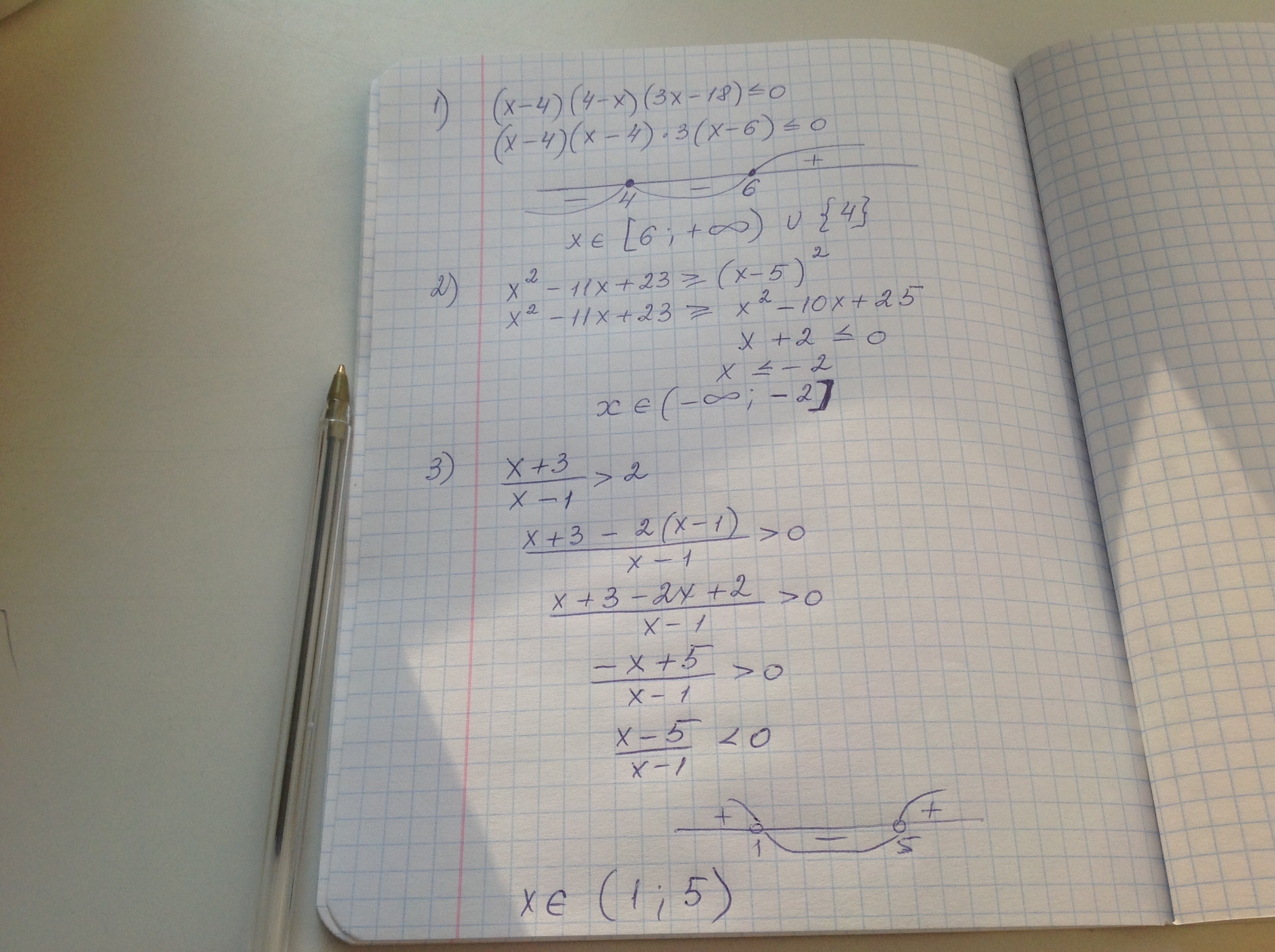 2.)Х2 -11х +23 ≥ ( х-5)^2