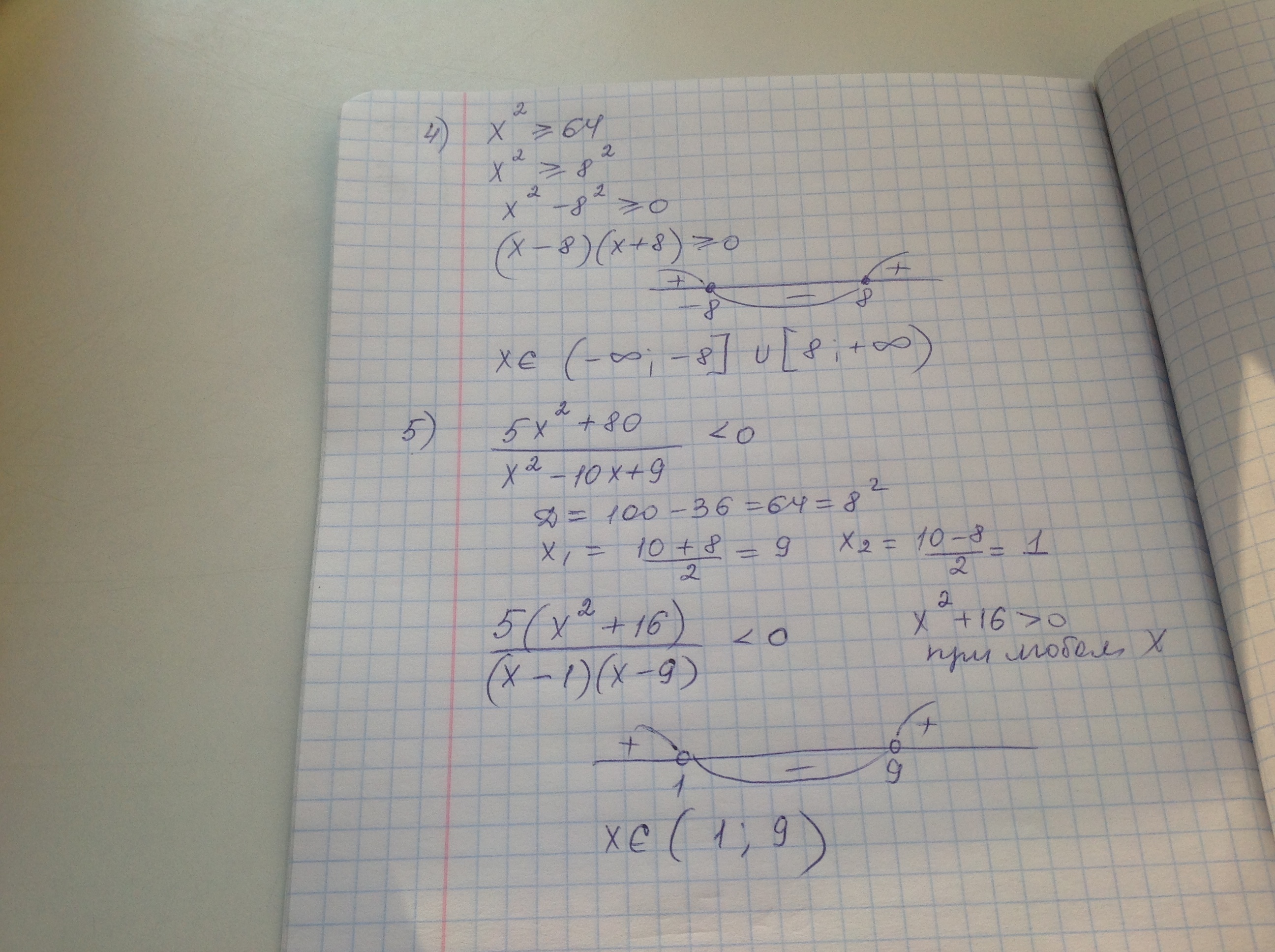 4.)x^2 ≥ 64