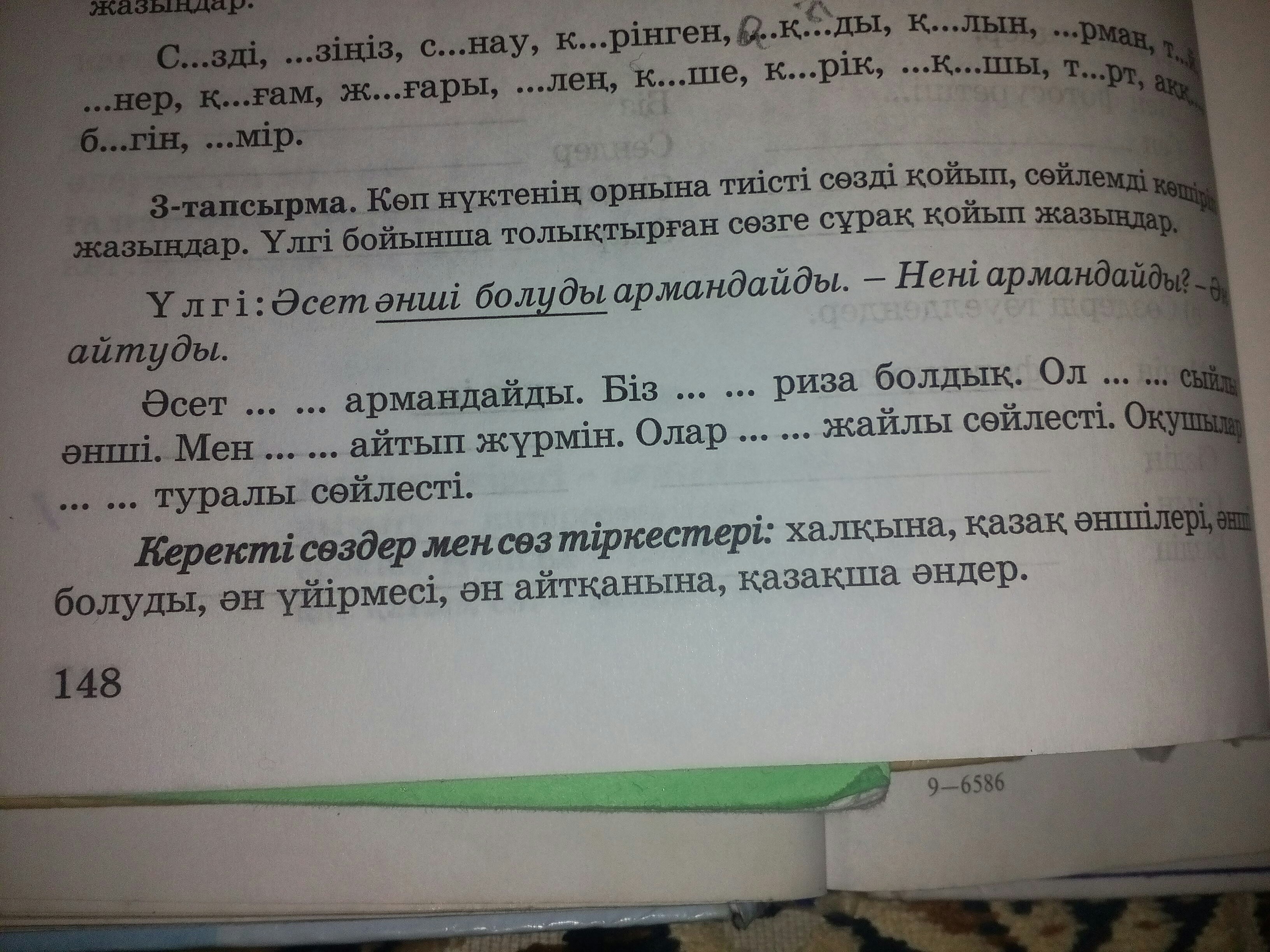4.Мен қазақша әндер айтып жүрмін. Не айтып жүрмін?