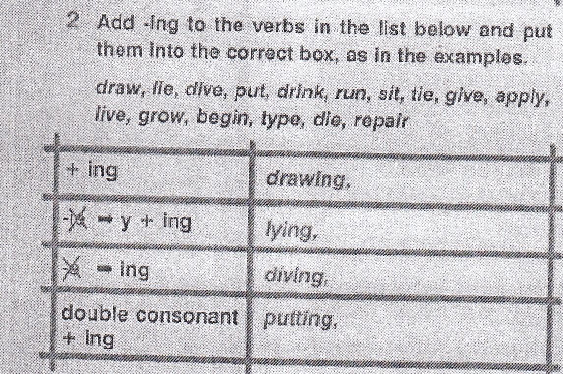 drinking(1),running(4),SITTING(4),tying(2),giving(3),applying(1),living(3),growing(1),beginning(4),typing(3),dying(2),repairing(1). P.S. в скобках номер столбика