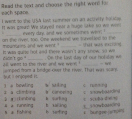 2)canoeing