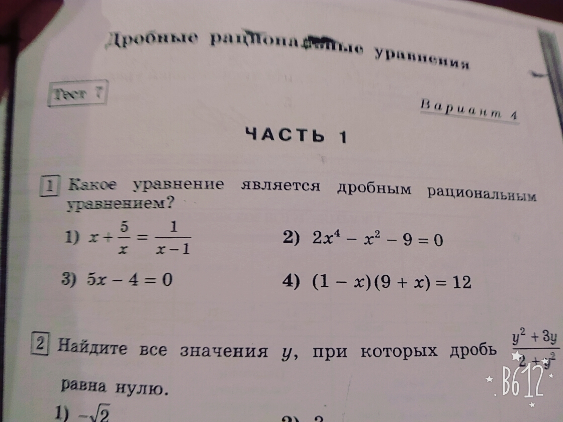 Какое уравнение является дробным рациональным уравнением? Номер 1