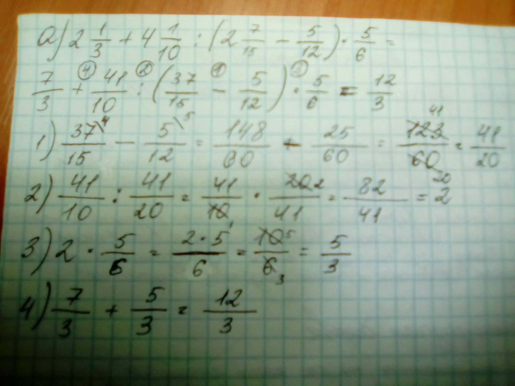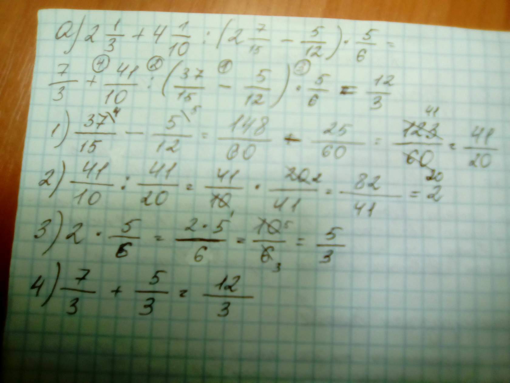 2целая1/3+4целая1/10:(2целая7/15-5/12)*5/6