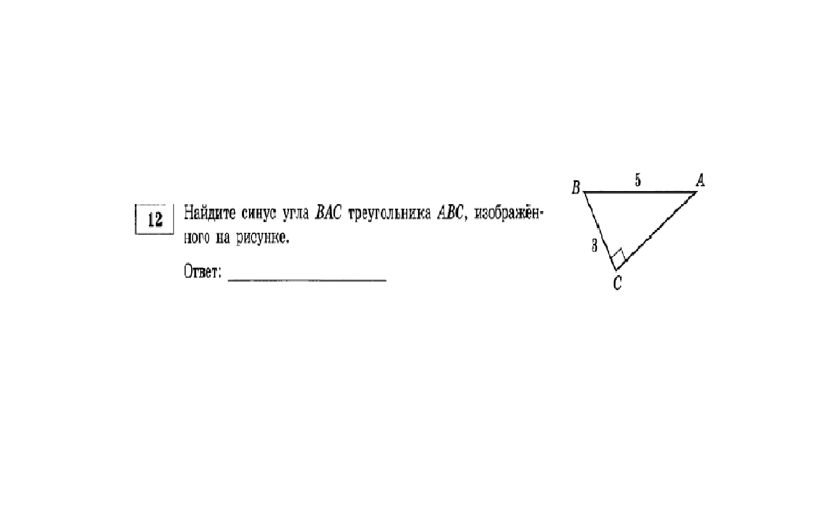 Найдите синус угла BAC треугольника ABC, изображенного на рисунке (см. вложение)