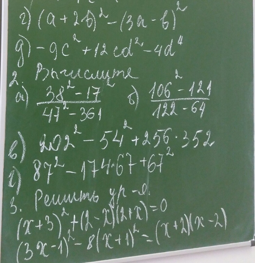 г) (a+2b)^2-(3a-b)^2=(4a+b)(-2a+3b);