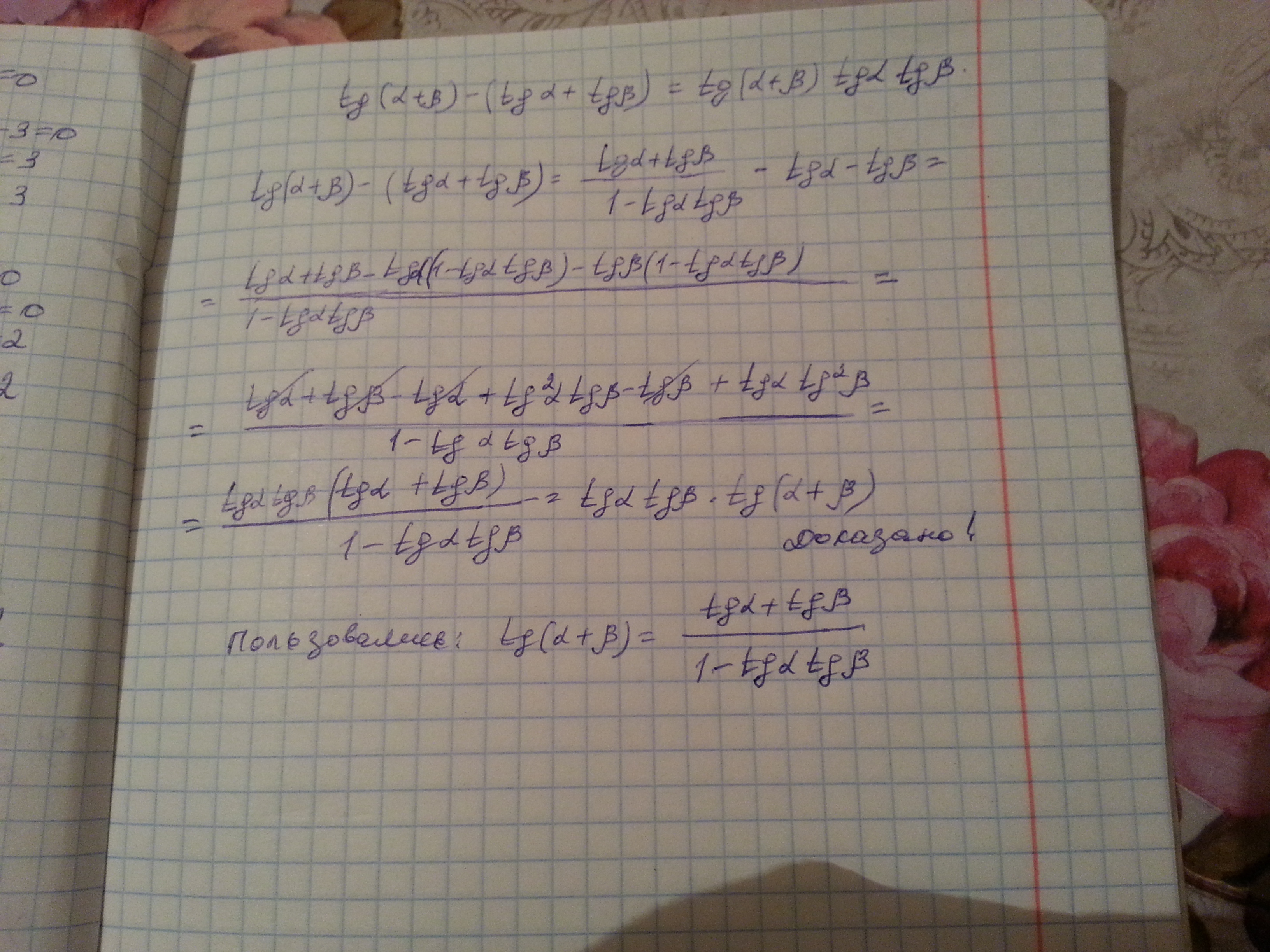 докажите тождество tga tgb + (tga+tgb) ctg(a+b) = 1, можешь еще с этим помочь?