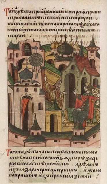 «И приславъ, говоритъ летопись, Гюрги (Юрий Долгорукий) къ Святославу, рече: приди ко мне брате въ Московъ. Святославъ же еха к нему съ дитятемъ своимъ Олегомъ в мале дружине, пойма съ собою Владимира Святославича (Владимира Рязанского); Олегъ же еха напередъ к Гюргю и да ему пардусъ (барса). И приеха по нем отецъ его Святославъ и тако любезно целовастася въ день пятокъ, на Похвалу Святой Богородице и быша весели. На другой же день повеле Гюргю устроить обедъ силенъ, и отвори честь велику имъ и да Святославу дары многи съ любовью и сынови его Олегови и Владимиру Святославичу, и муже (дружинникам) Святославле учреди и тако отпусти и (их)».