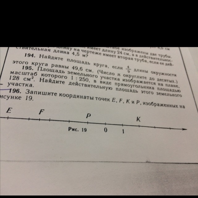 Запишите координаты точек E,F,K и P, ихображённых на рисунке 19
