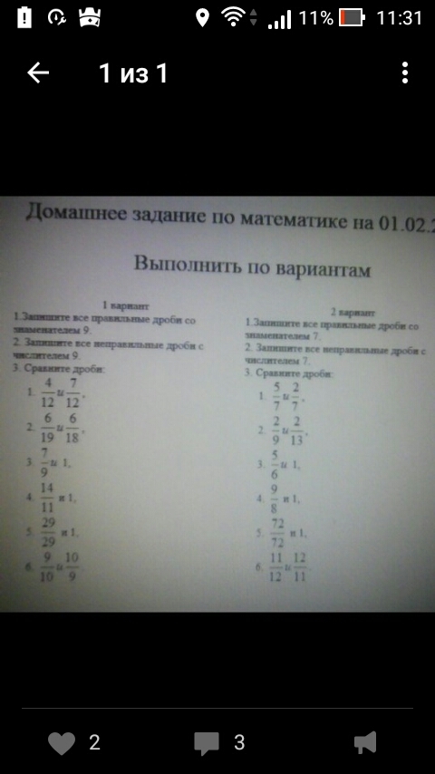 1) 1/9; 2/9; 3/9; 4/9; 5/9; 6/9; 7/9; 8/9