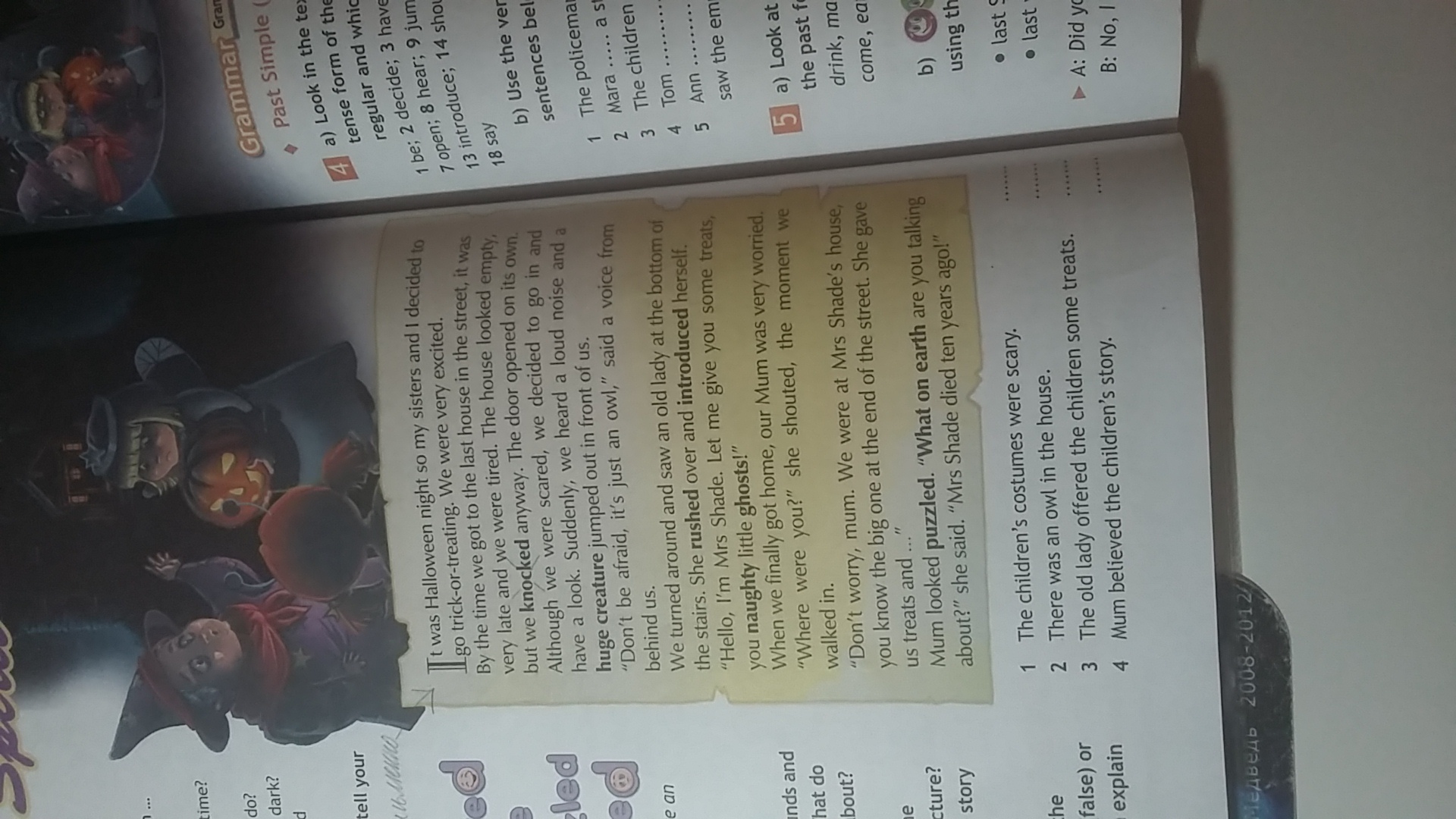 Однажды в ночь Хелоуина я и моя сестра пошли собирать конфеты.(Дословно это была хелоуинская ночь и поэтому я и моя сестра пошли trick-or-threat -в переводе с английского конфеты или жизнь).Это было восхитительно (мы очень восхитились).