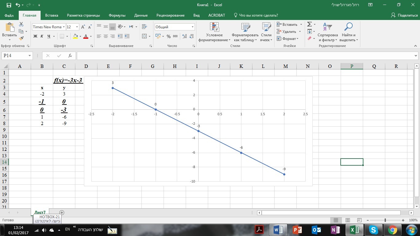 Постройте график функции,заданной формулой у=-3х-3. С помощью графика найдите координаты точек пресечения графика с осями координат