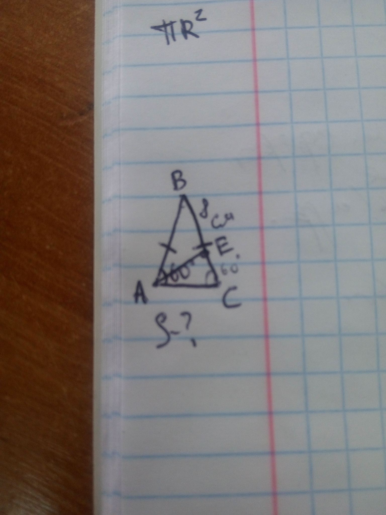 дан треугольник ABC, AB=BC ,угол CAB =60 градусам,AE - биссектриса,BE =8см. Найти площадь треугольника ABC