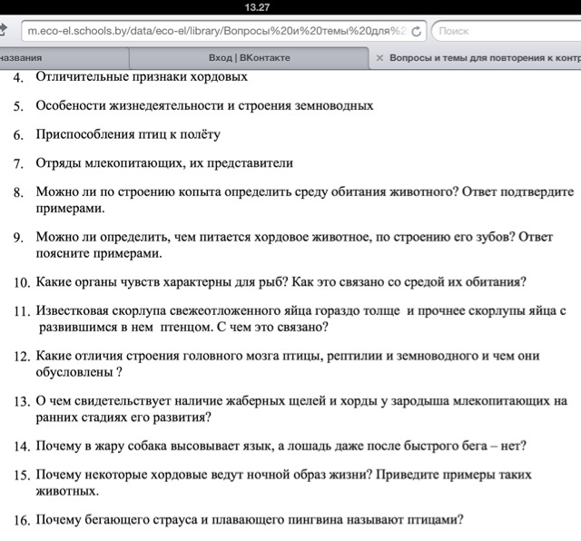 1)Систематика и характерные признаки типа Chordata суммированы ниже. Главная отличительная особенность хордовых — это наличие продольного дорсального тяжа — хорды, которая располагается между спинной нервной трубкой и кишкой. Хорда служит внутренней опорой для тела и усиливает локомоторные способности животного. Хордовые, вероятно, произошли от плавающих личиночных форм своих древних предков. В виде, несколько напоминающем ее исходную форму, хорда имеется у некоторых сохранившихся до наших дней групп беспозвоночных хордовых. Однако в процессе эволюции у большинства хордовых она в основном заменилась костными позвонками, образующими позвоночный столб, или позвоночник. Животных с позвоночным столбом называют позвоночными, всех остальных — беспозвоночными. Характерные признаки хордовых: - На определенной стадии развития имеется хорда. Это упругий стержень, состоящий из плотно прилегающих друг к другу - вакуолизированных клеток и покрытый прочной оболочкой - Трехслойные целомические животные - Двусторонняя симметрия - Имеются жаберные (висцеральные) щели (отверстия в глотке)* или дуги - Полая нервная трубка расположена дорсально - Мышечные блоки (миотомы) расположены сегментарно и локализованы по бокам тела - Постанальный хвост (начало хвоста расположено позади анального отверстия)* - Конечности образуются более чем из одного сегмента тела* Характерные признаки позвоночных: - У взрослых особей хорда заменяется позвоночным столбом — позвоночником (рядом позвонков, состоящих из кости или хряща) - Имеется хорошо развитая центральная нервная система, в том числе мозг/ защищенный черепом - Внутренний скелет - Жаберные щели немногочисленные - Две пары плавников или конечностей. С остальной частью скелета они соединяются с помощью тазового и плечевого поясов".