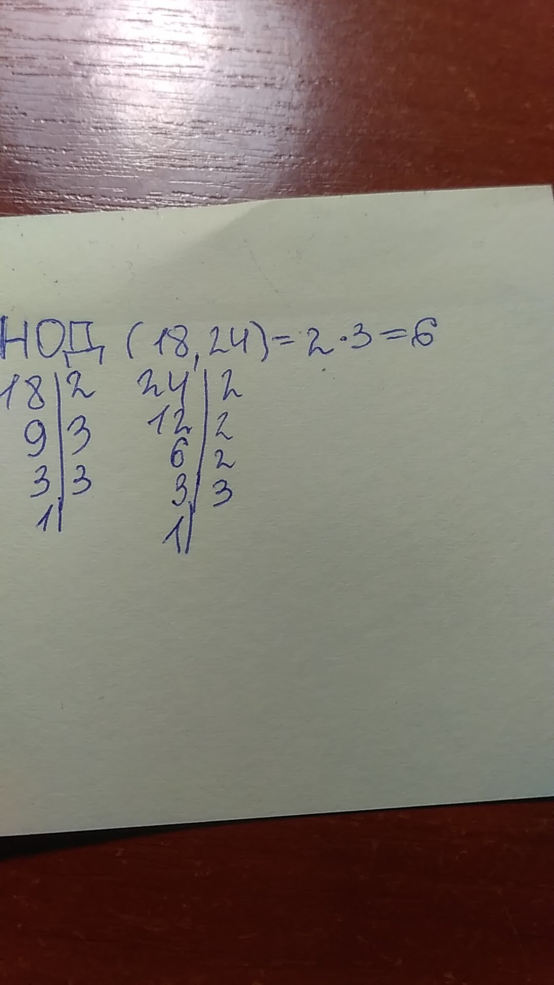 18=2*3*3; 24=2*2*3. Отсюда НОД (18,24)=2*3=6.
