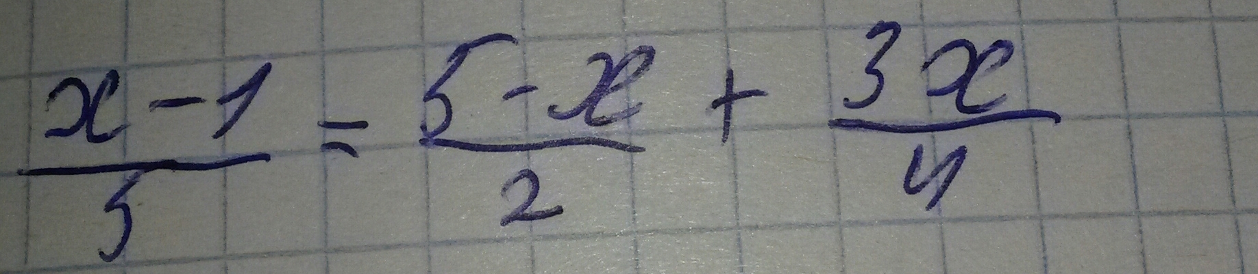 х-1 / 5 = 5-х / 2 + 3х/4 (*20)