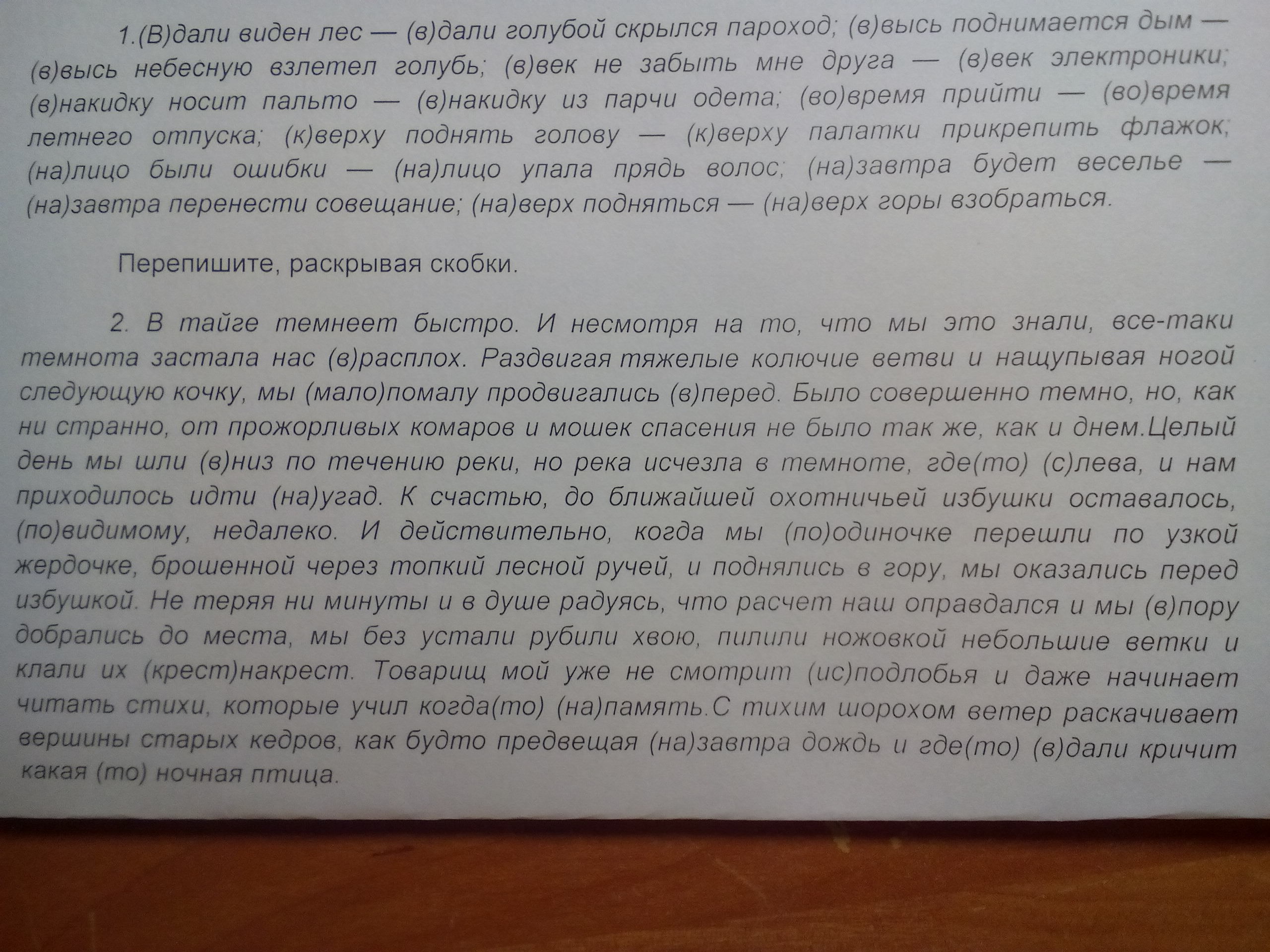 в расплох (раздельно ) , вперёд ( слитно ) ,мало -помалу ,вниз (слитно ) ,где-то , слева (слитно ) , наугад (слитно ) , по-видимому , поодиночке ,впору ,исподлобья , когда-то ,на память ,на завтра , где-то , вдали , какая-то . думаю у меня правильно )) удачи !