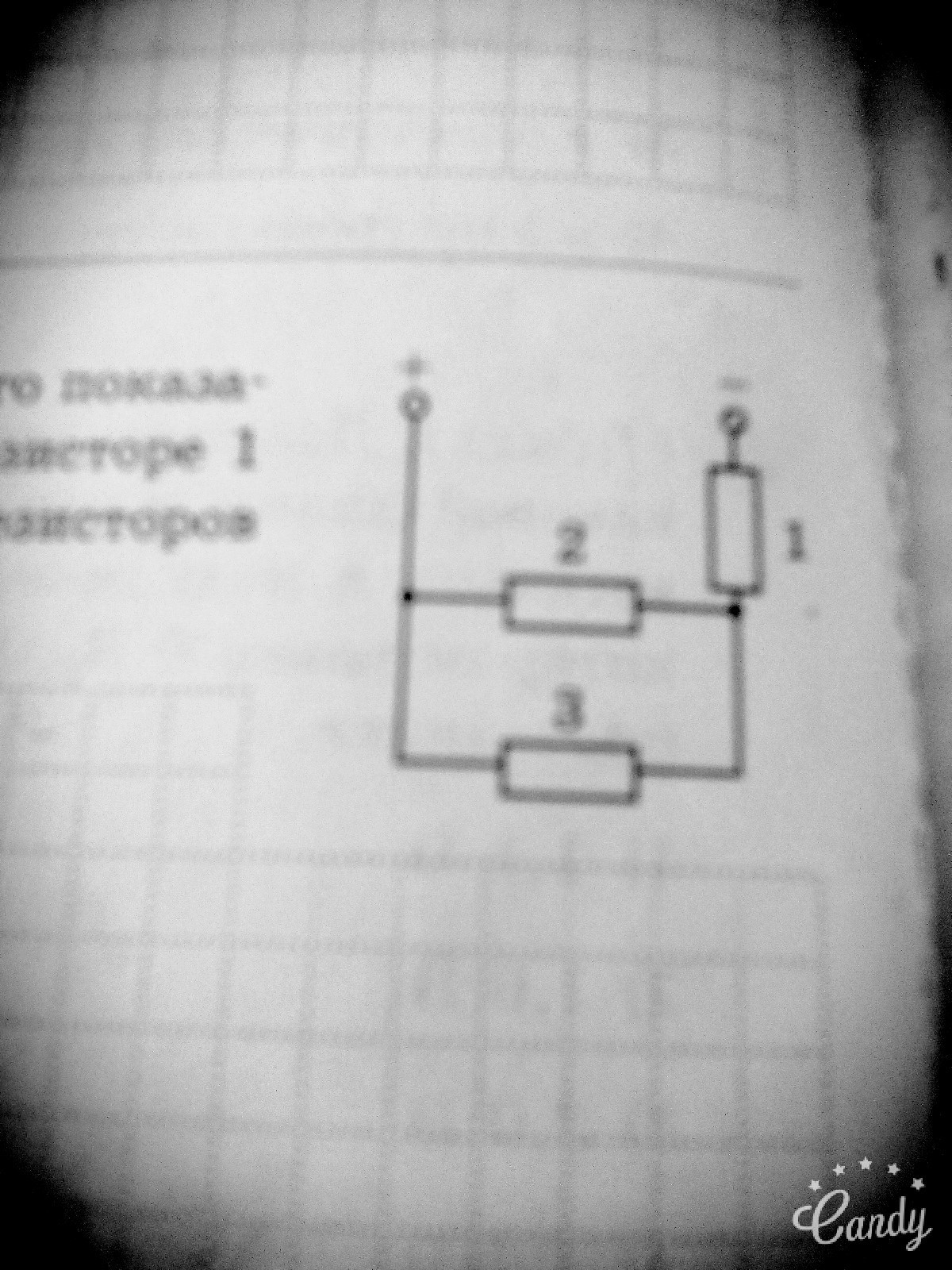 Напряжение на участке цепи равно 48В. Определите силу тока в резисторе 1 и мощность тока в резисторе 2, если сопротивление резисторов R1=260Ом, R2=90Ом, R3=180Ом.