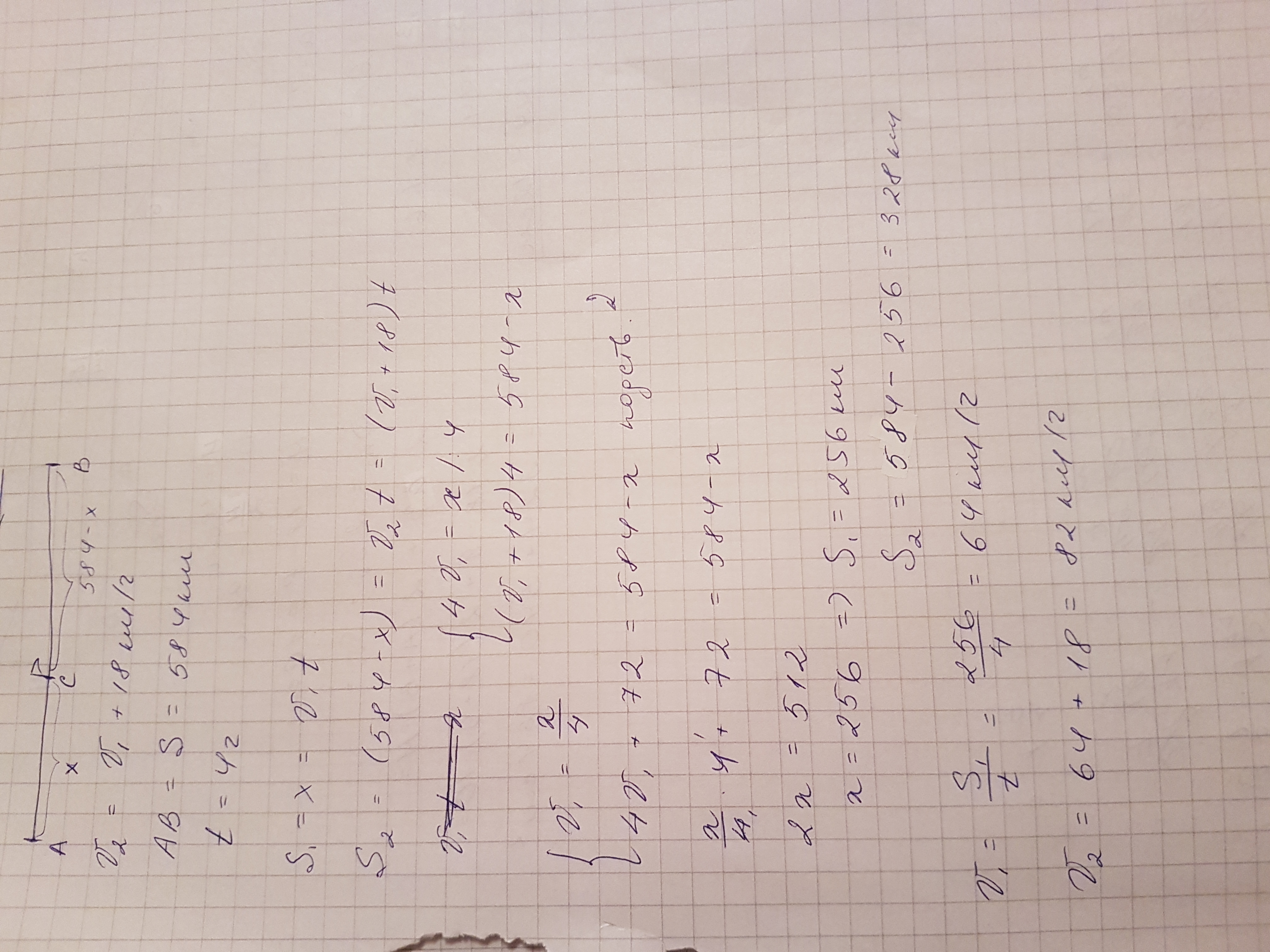 Автобус и грузовая машина, скорость которой на 18 км/ч больше скорости автобуса, выехали одновременно навстречу друг другу из двух городов, расстояние между которыми 584 км. Определи скорости автобуса и грузовой машины, если известно, что они встретились через 4 ч. после выезда.