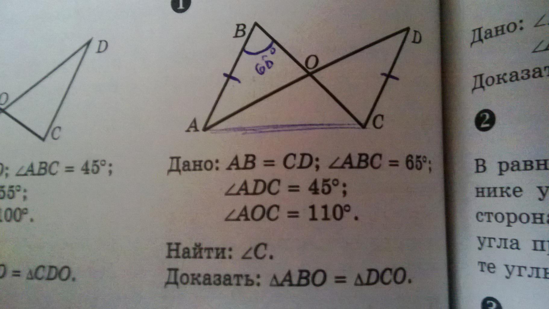 Дано: AB = CD ; угол ABC = 65 градусов.