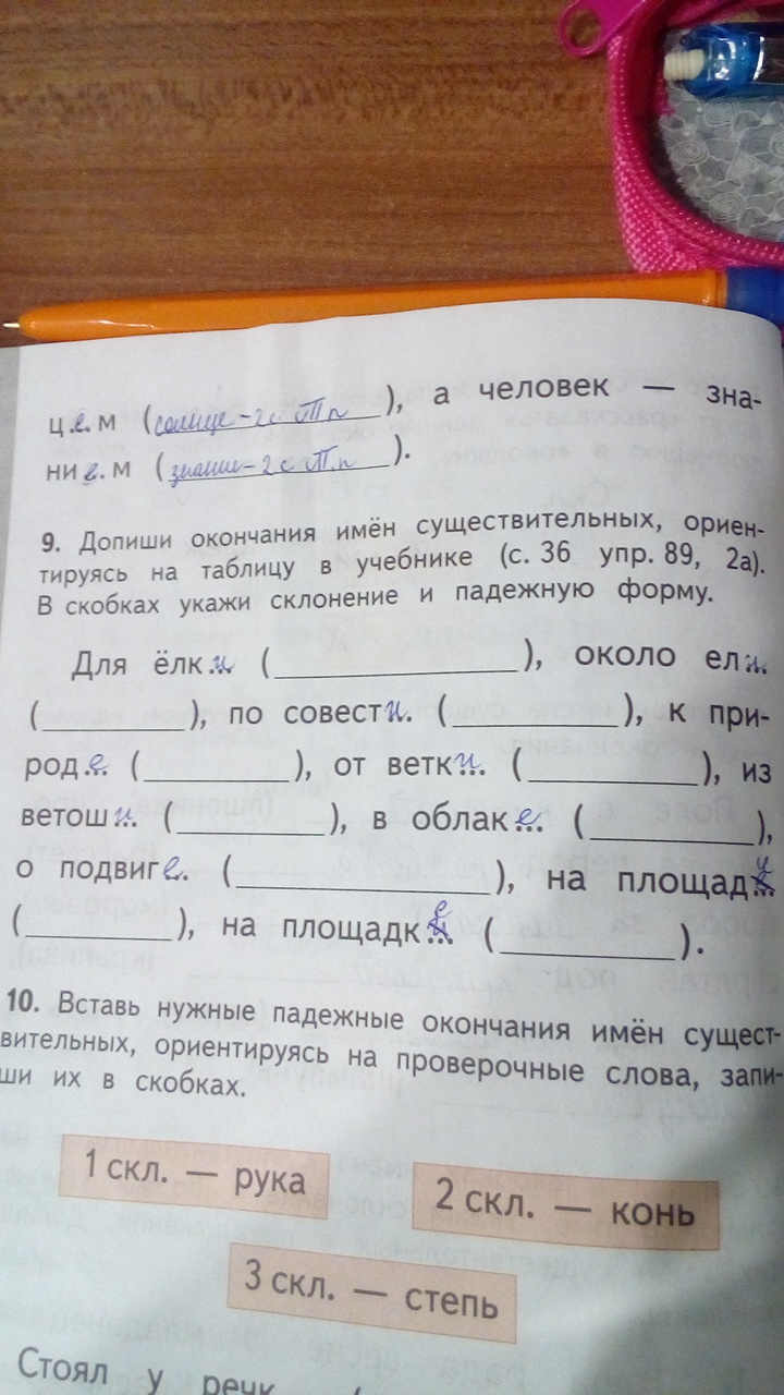 Допиши окончания имён существительных , ориентируясь на таблицу в учебнике (с.36 упр.89, 2а).