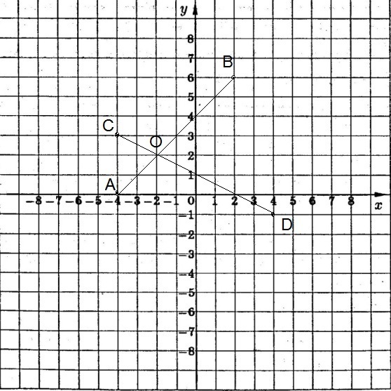 ОТВЕТ: координаты точки пересечения луча AB и отрезка CD (-2;2)