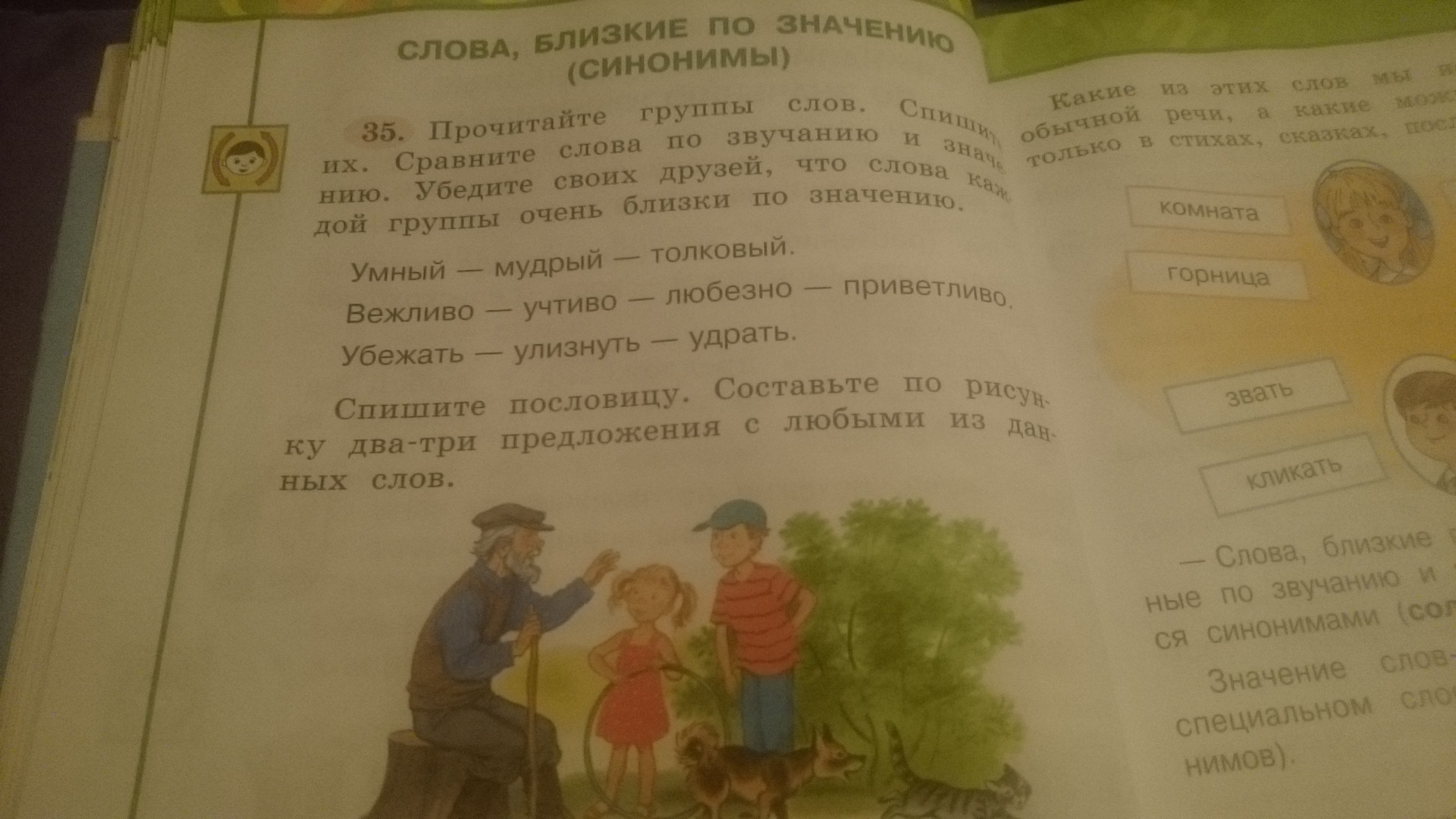 Мудрый дедушка сидел на пиньке. Мимо пробегали дети. Они вежливо поздоровались и побежали дальше.