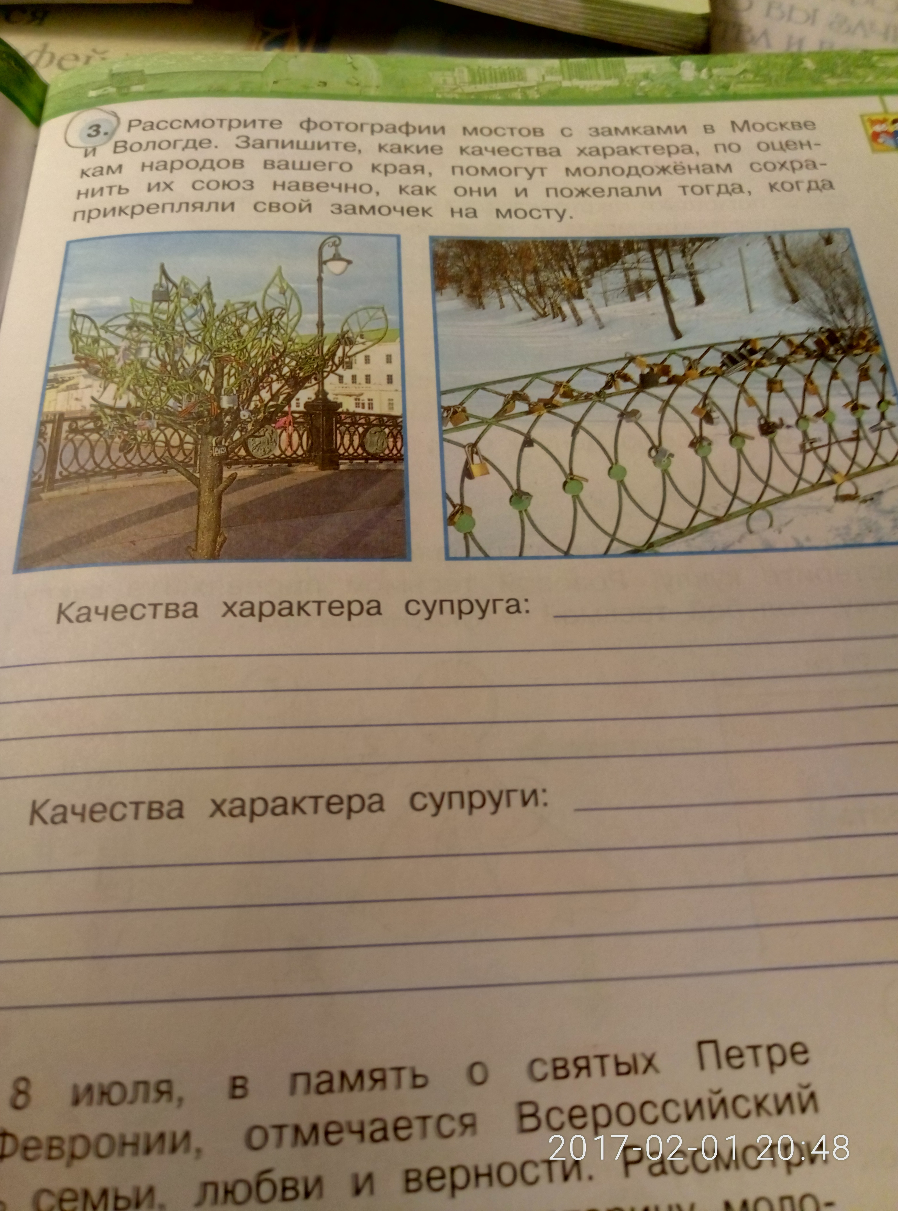 Такие качества как взаимное уважение, способность услышать мнение своего близкого и дорогого человека, не быть эгоистом в отношениях, что вот - только я и все, больше никто не решает. Потому что многие вопросы решаются только сообща, совместно. Прикрепляя замочек молодые люди как бы закрепляют свои отношения, и делают это так прочно, надолго. Еще важным фактом долгих отношений является терпение, причем на этом основано много действий у человека. Возникнет ли ссора, не получается ли что-то , ошибся ли твой близкий человек, мы всегда должны простить его, на это требуется именно терпение, а иначе произойдет конфликт, непонятные нам события или совсем ненужные ссоры.