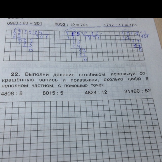 запись и показывая сколько цифр в неполном частном с помощью точек.
