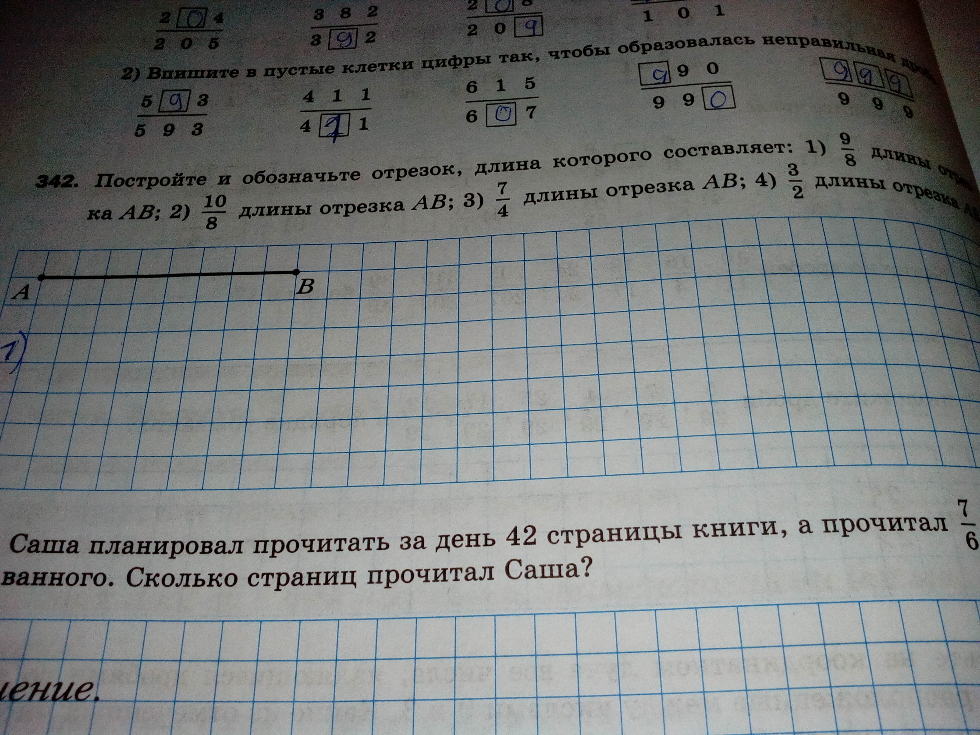 Постройте и обозначьте отрезок, длина которого составляет 1)9/8 длины отрезка AB; 2)10/8 длины отрезка AB; 3)7/4 длины отрезка AB; 4) 3/2 длины отрезка AB.