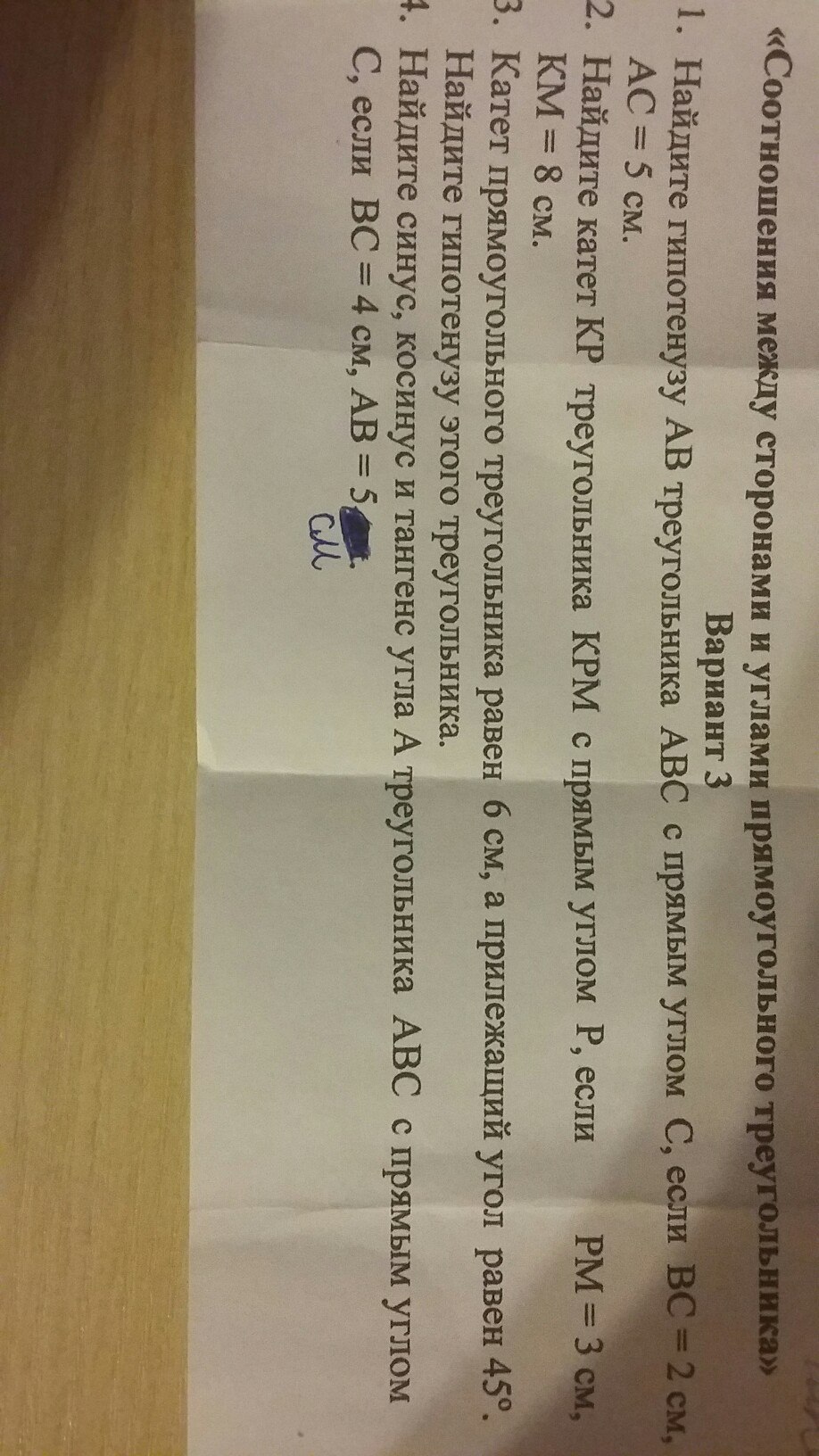 4) АВ - гипотенуза, ВС больший катет. Найдём меньший катет. Без теоремы Пифагора. Это египетский треугольник. Меньший катет = 3 (египетским называют треугольник 3, 4, 5).