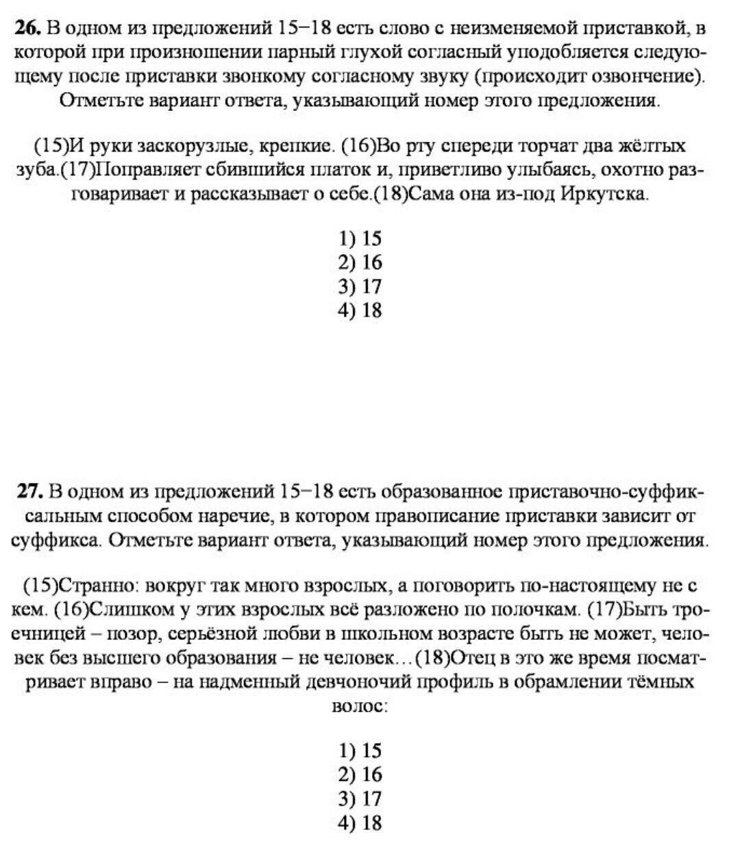 № 26. Ответом на вопрос является слово 'сбившийся' (приставки 'з' не бывает, из за счет последующей согласной 'б' происходит озвончение) в предложении № 17.