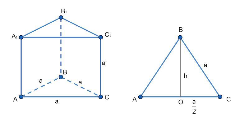 Найдем площадь основания, т.е. площадь равностороннего ΔABC. Sосн = 1/2 * a * h.