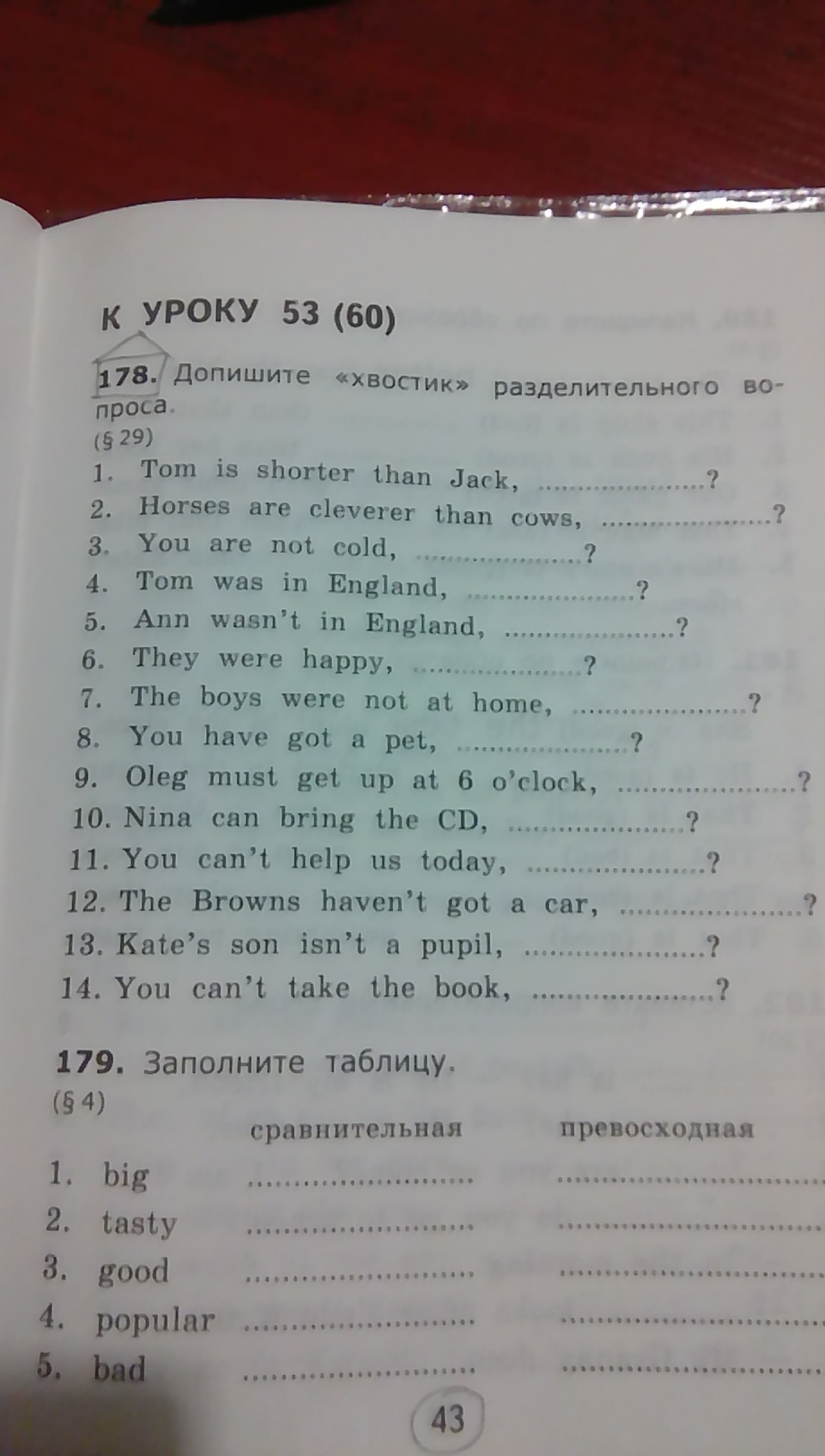1 isn't he 2 aren't they 3 aren't you 4 wasn't he 5 was she 6 weren't they 7 weren't they 8 haven't you 9 mustn't he 10 can't she 11 can you 12 have they 13 is he 14 can you
