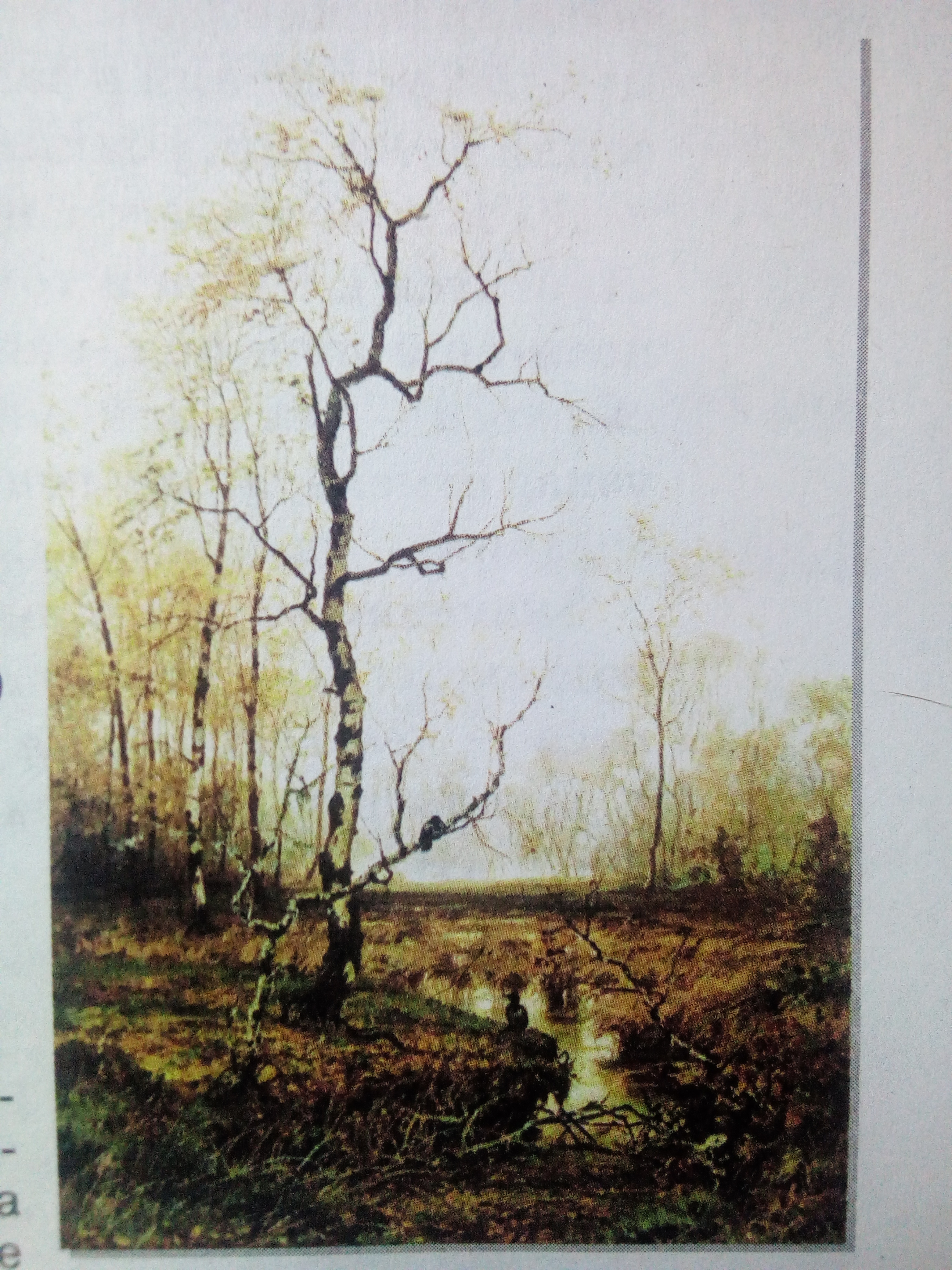 На картине изображена красивая берёза и маленькая речка проходящая рядом.На этой картине видна осень,её не обычные краски
