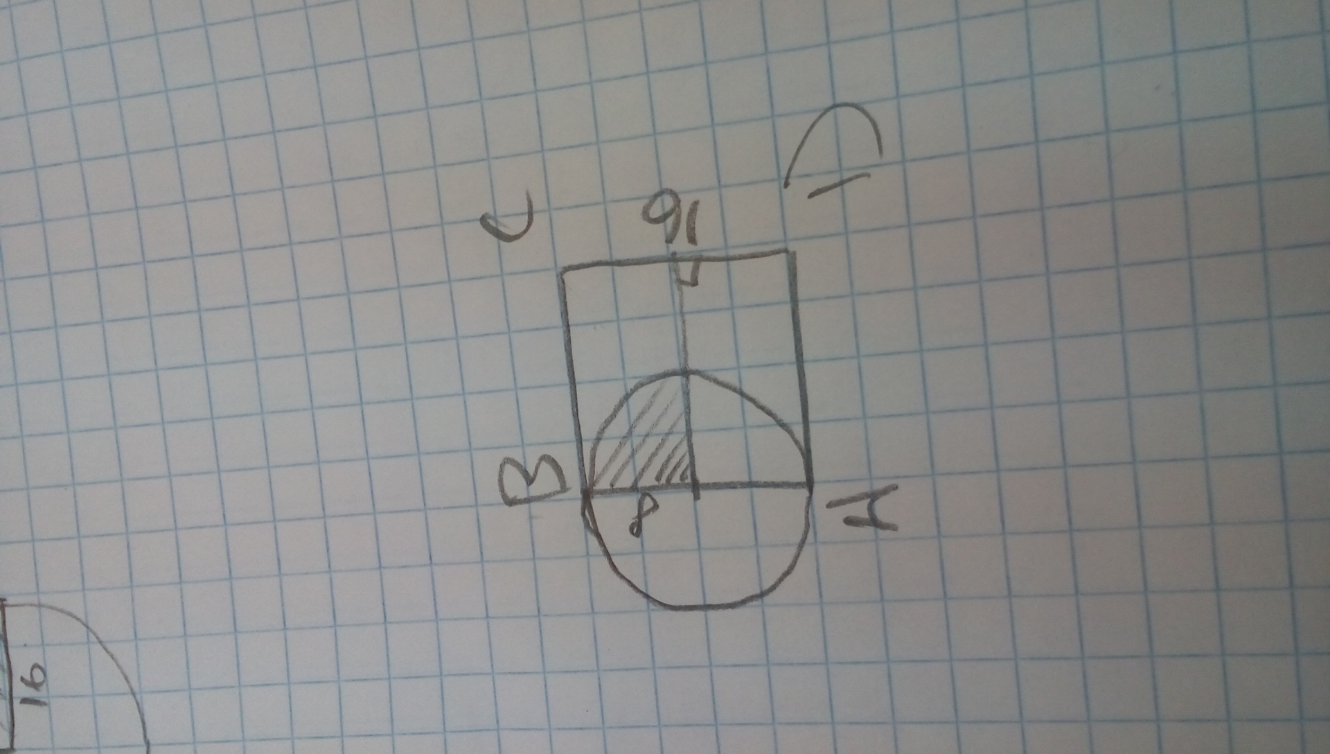 из середины ВС опустим перпендикулярна сторону СD. закрашенная часть 14 окружности
