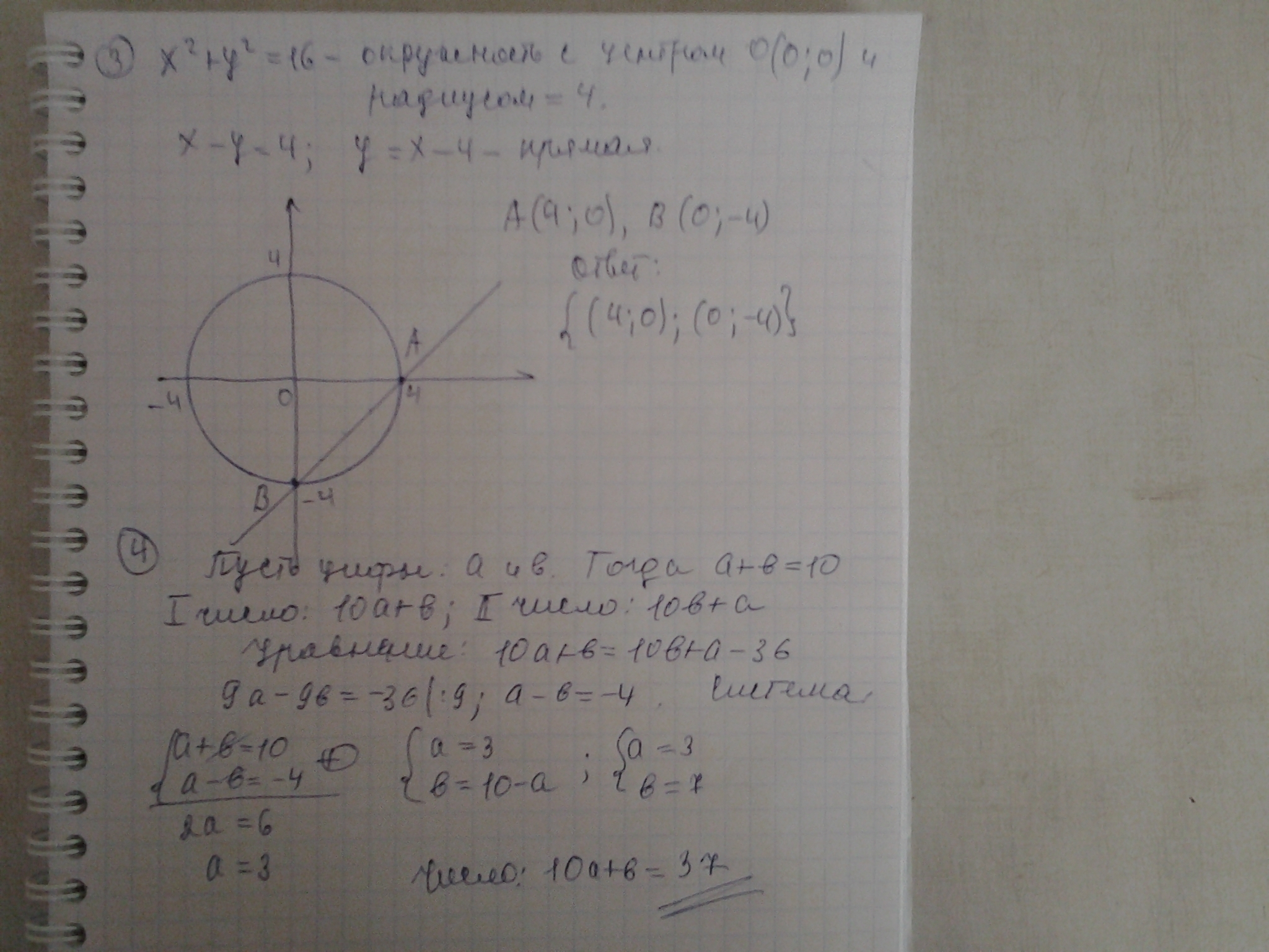 Применены : график и окружности, прямой, система двух линейных уравнений