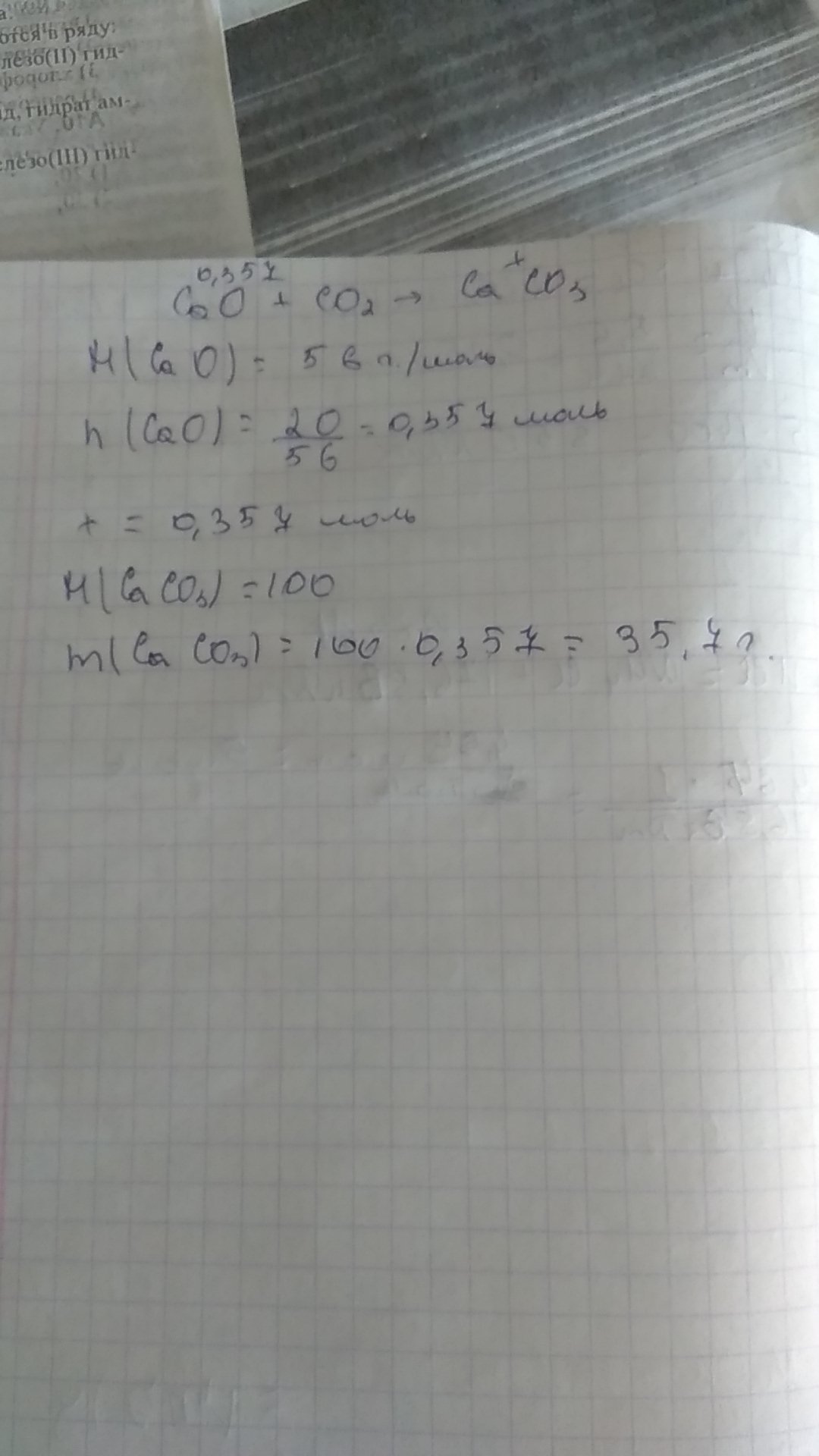 найти массу карбоната кальция, образовавшегося при взаимодействии 20 г оксида кальция и углекислого газа