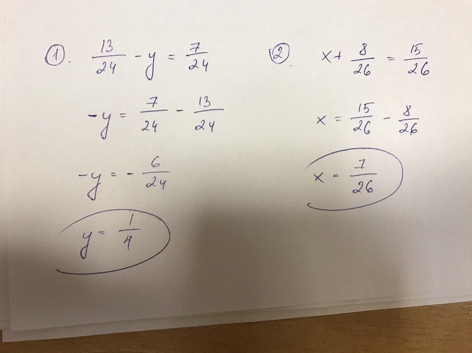 То же самое с вопросом под б.) Из 15/26 вычитаете 8/26. Знаменатели дроби одинаковые, поэтому не смотрите на них, смотрите только на числители, и над ними производите действия.