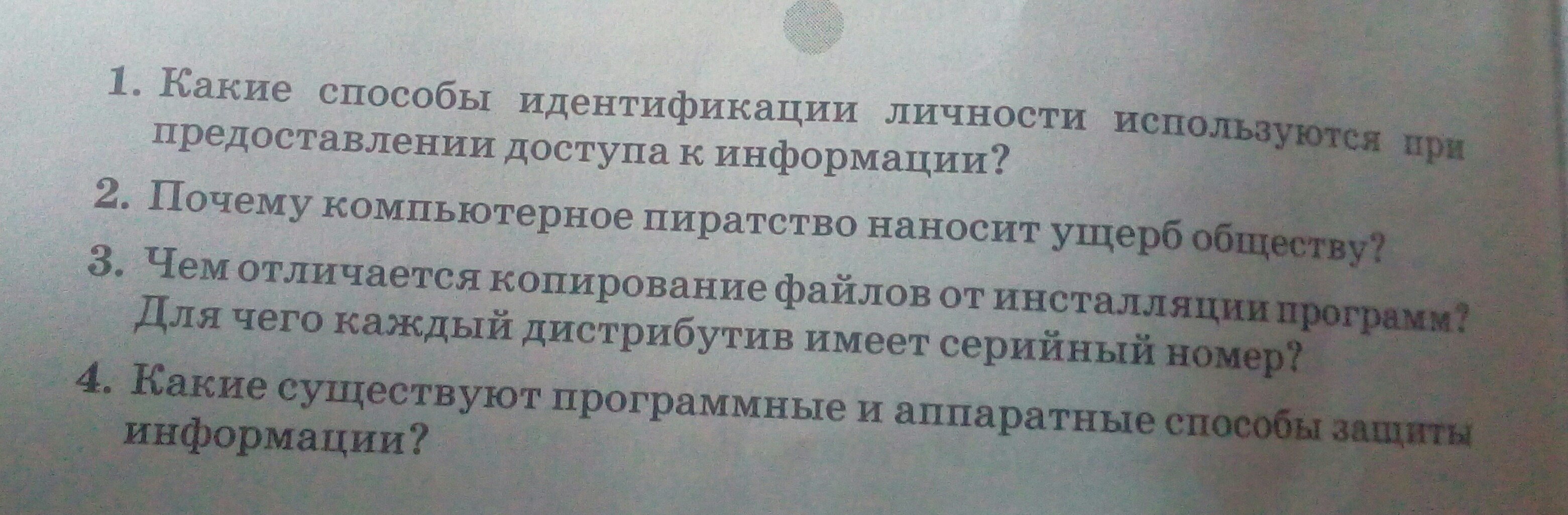 1.Пароли, биометрические системы идентификации, серийные номера, программные ключи, аппаратные ключи, электронная подпись.
