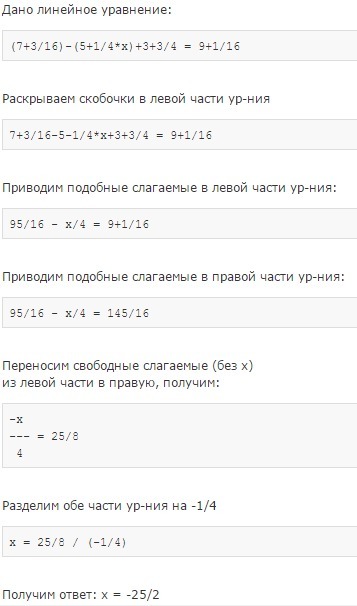 Решение уравнения (7+3/16)-(5+1/4x)+3+3/4=9+1/16: