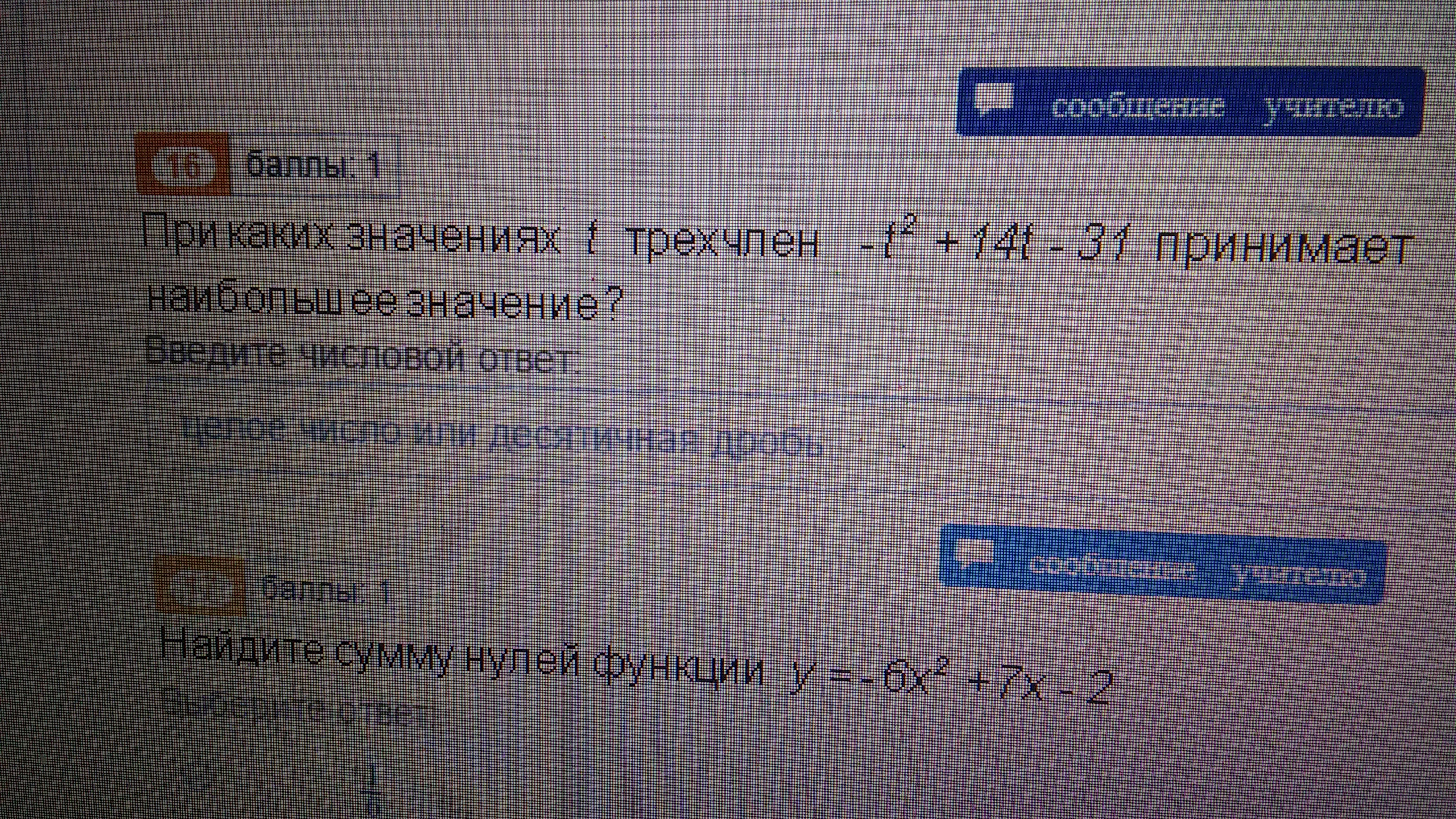 (t-7)² будет всегда неотрицательным числом. Значит, трёхчлен принимает наибольшее значение при (t-7)² = 0. Оно достигается при t = 7